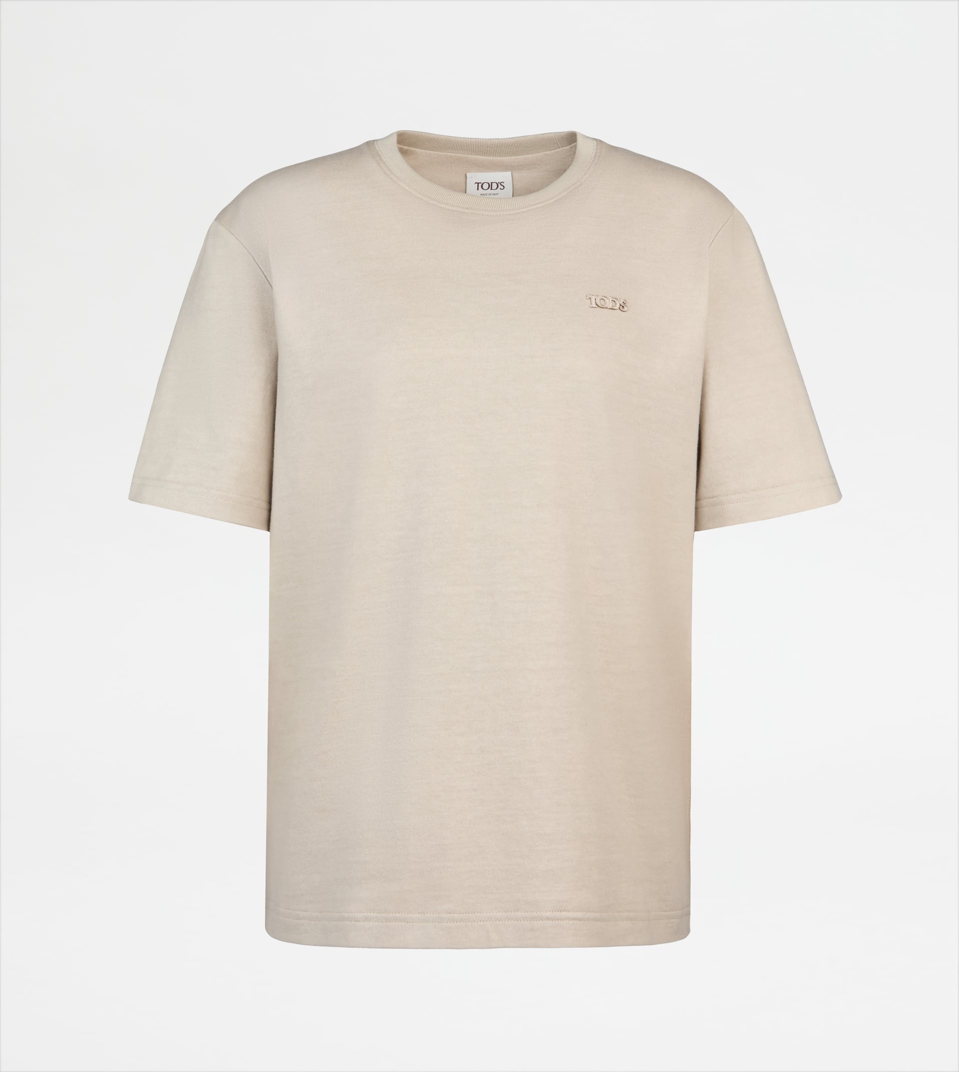 Short-sleeved round-neck T-shirt in jersey, characterized by the Tod's patch applied on the chest. - Made in Italy - T-shirt in jersey - Fitting: regular - Item composition: 100% cotton - Maintenance and care cards included