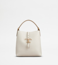 T TIMELESS BUCKET BAG IN LEATHER MINI - WHITE
