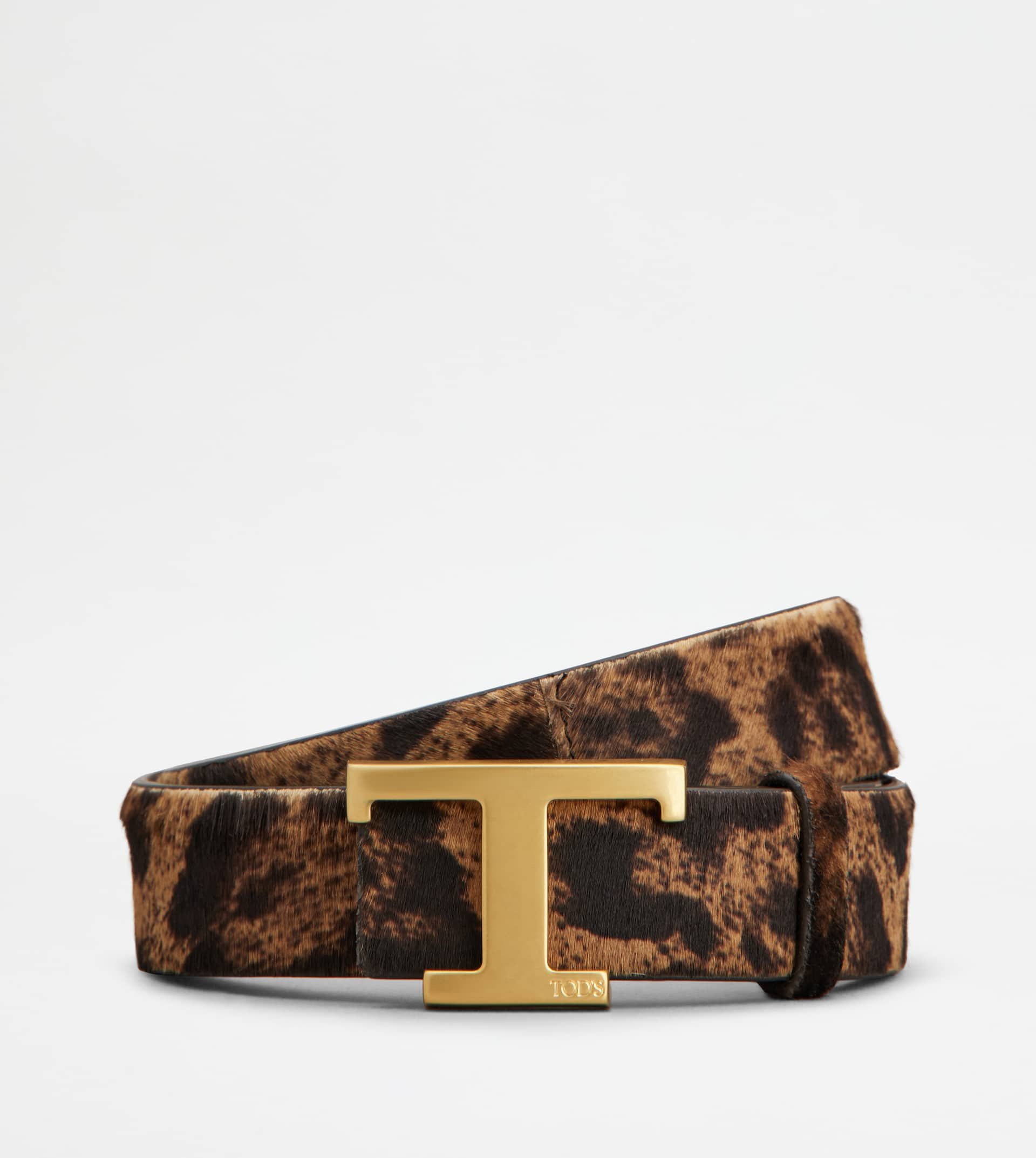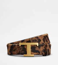 Double face belt in refined leather with one side featuring pony effect animal print. This style is enriched by the iconic branded metal T Timeless buckle. - Made in Italy - Double face belt - Item crafted in leather - Pony effect - Branded metal T Timeless buckle - Width 1.2 ins - Maintenance and care cards included - Branded dustbag