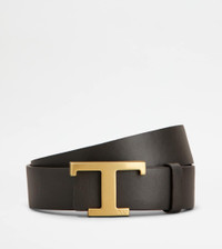 T TIMELESS REVERSIBLE BELT IN PONY EFFECT LEATHER - BROWN