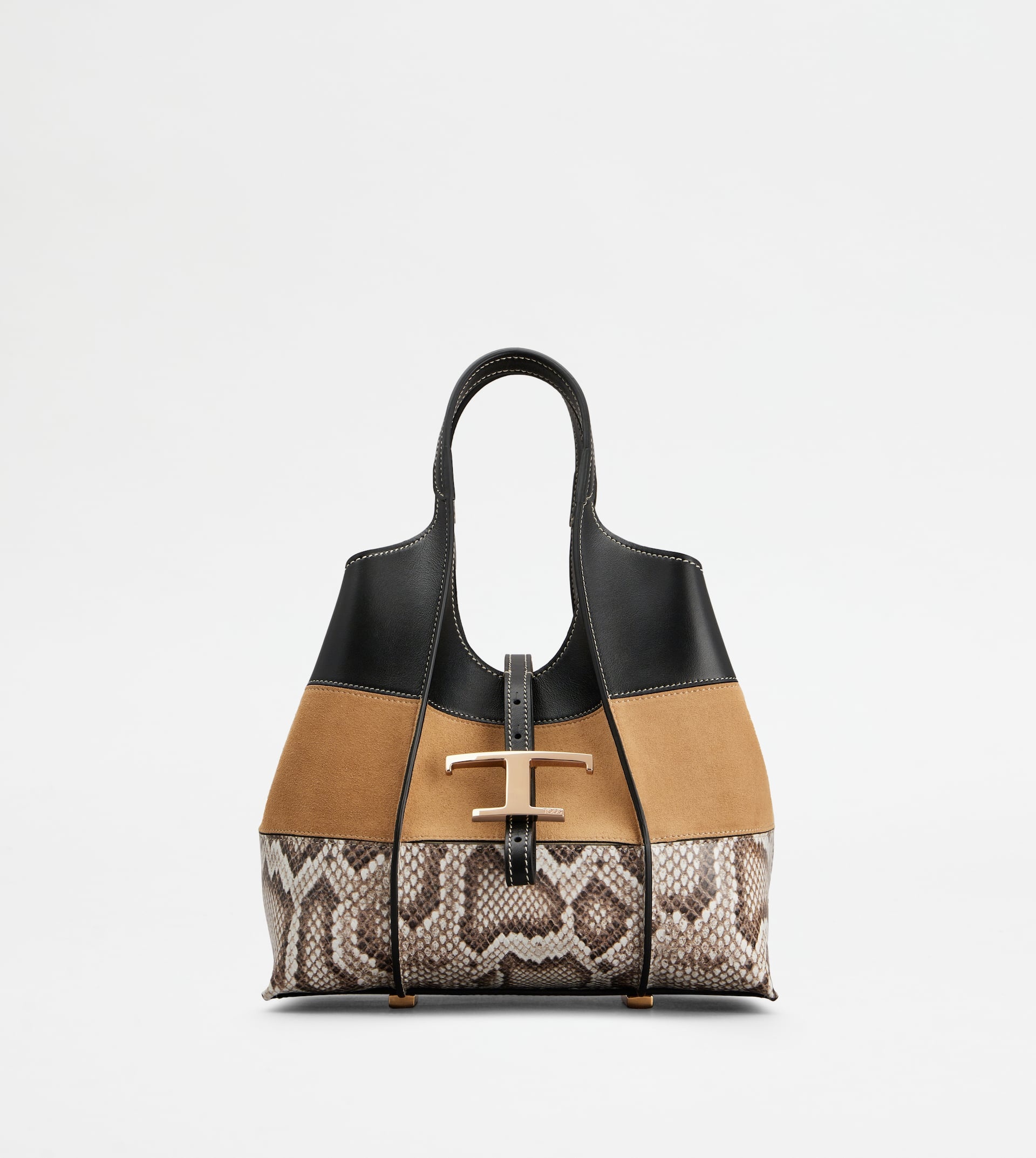 T TIMELESS SHOPPING BAG IN LEATHER MINI - BROWN, BLACK, BEIGE