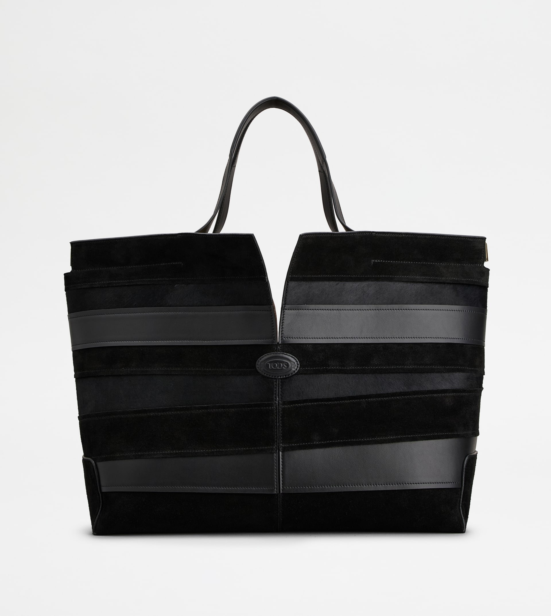 TOD'S DI BAG FOLIO IN SMOOTH LEATHER AND SUEDE MEDIUM - BLACK