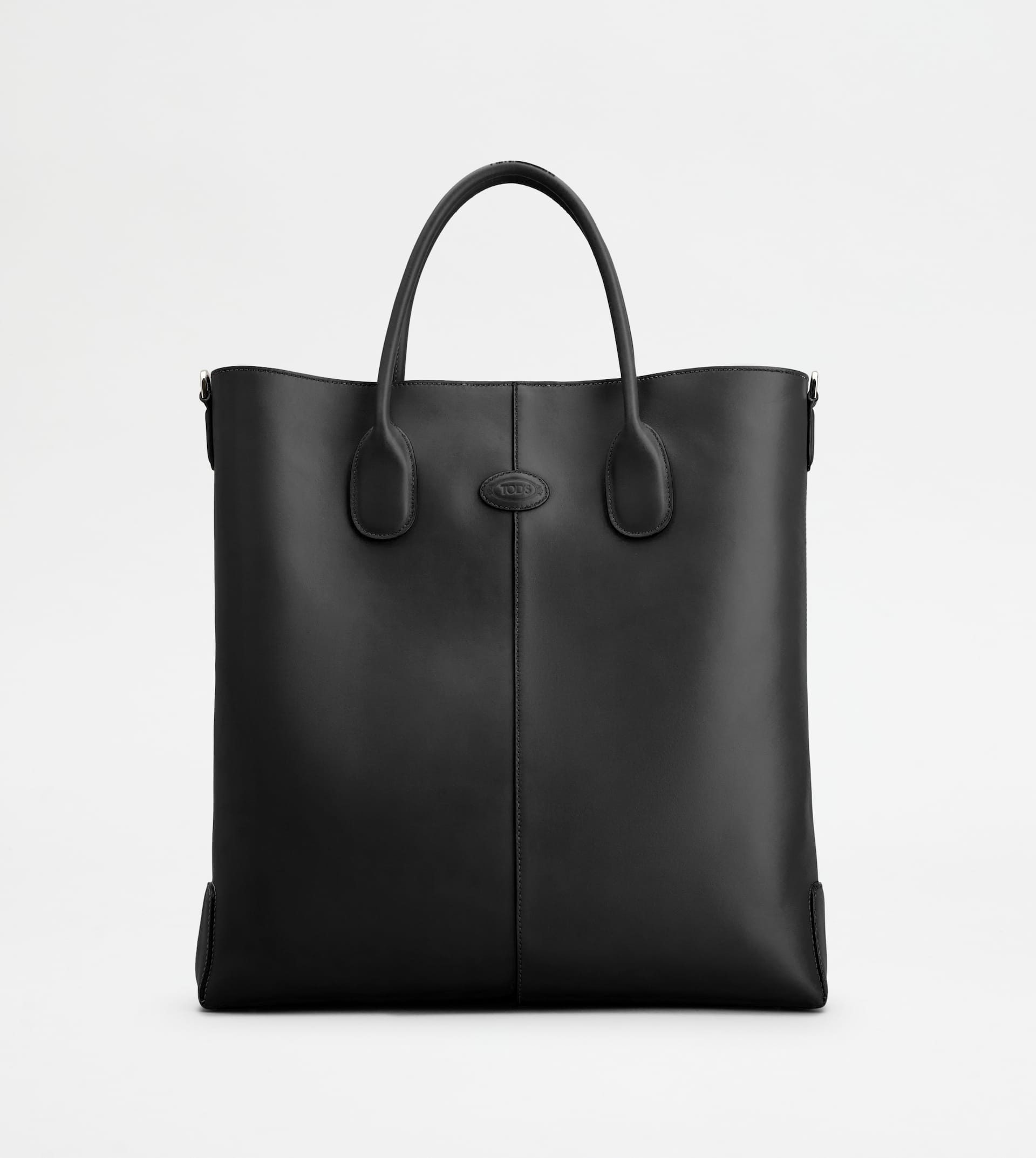 Tod's Di Bag Tote Bag is characterized by the iconic central ribbing and oval with Tod's logo. Crafted in soft calfskin leather, it features fixed tubular handles and a removable shoulder bag in fabric. Complemented by an internal zipped pouch, it accompanies your everyday outfit with class. - Dimensions: L 15 ins x H 15.4 ins x D 3.5 ins - Handles: height (drop) 5.5 ins - Adjustable and removable shoulder strap: height max (drop) 26 ins, length max 53,1 ins - Made in Italy - Men's Tod's Di Bag Shopping Bag - Item crafted in calfskin leather - Tod's logo stamped on the front - Magnet closure - Zipped pouch in leather - Branded metal feet - Maintenance and care cards included - Branded dustbag