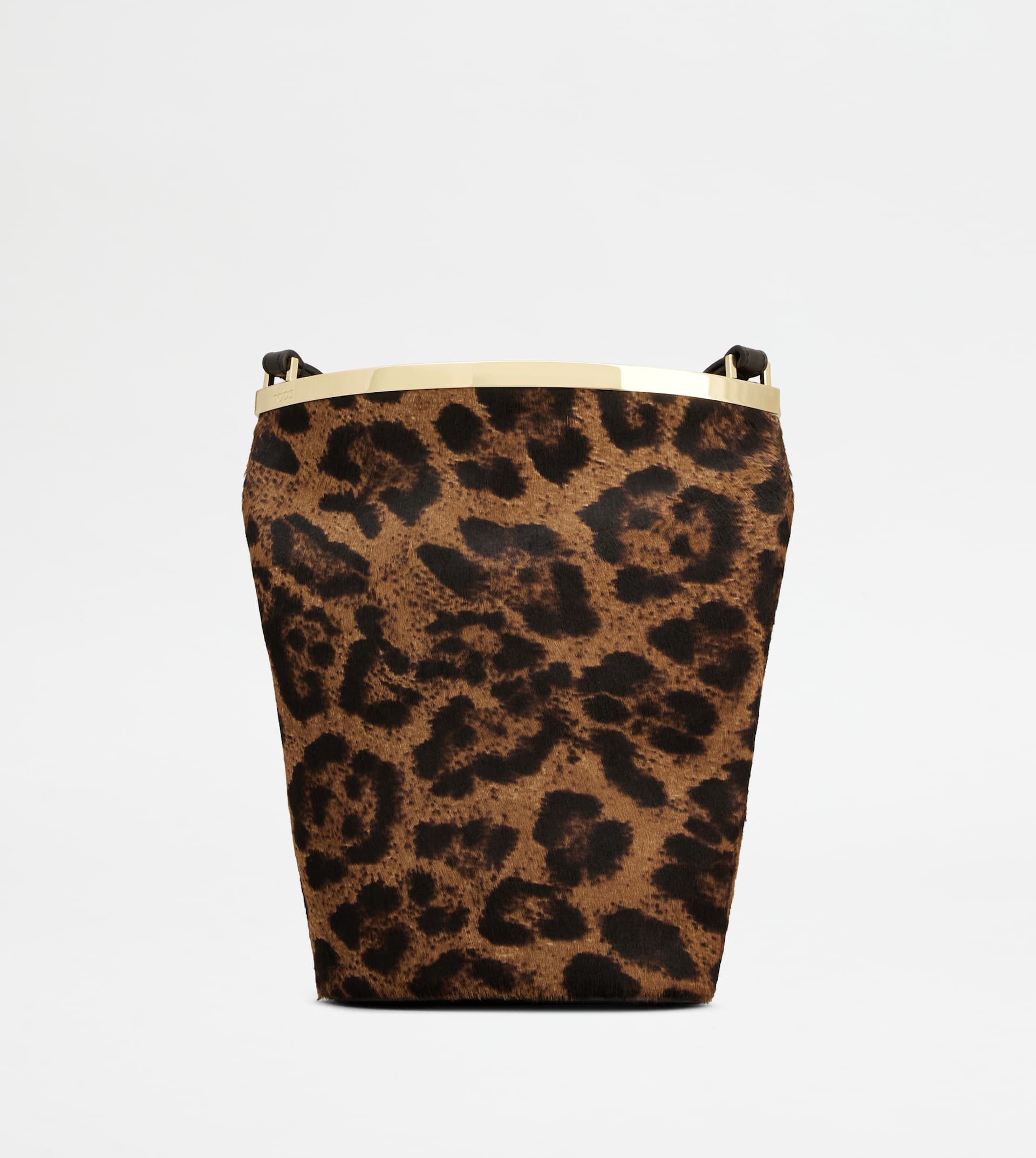 An elegant metal bar is the closing element of this mini bucket bag with minimal lines. The essentiality of this style's shapes is combined with an animal-print pony effect leather. Featuring an adjustable shoulder strap in smooth leather, it comes with a practical zip on the back with access to the internal compartment. - Dimensions: L 7.9 ins x H 8.7 ins x D 3.3 ins - Adjustable shoulder strap: height (drop) 20.1 ins, length max 48.2 ins - Made in Italy - Mini bucket bag in animal-print - Item crafted in pony effect calfskin leather - Smooth leather inserts - Snap closure with metal bar and side straps - Zip on the back - Maintenance and car cards included - Branded dustbag