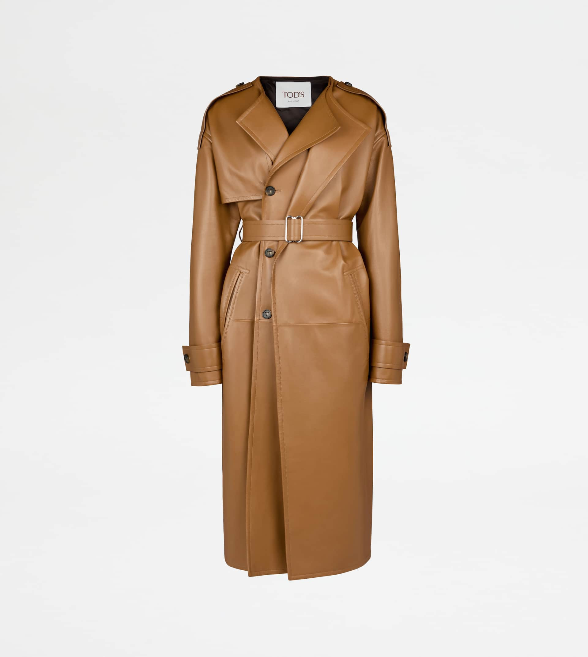 TRENCH COAT IN LEATHER RELAXED FIT - BROWN