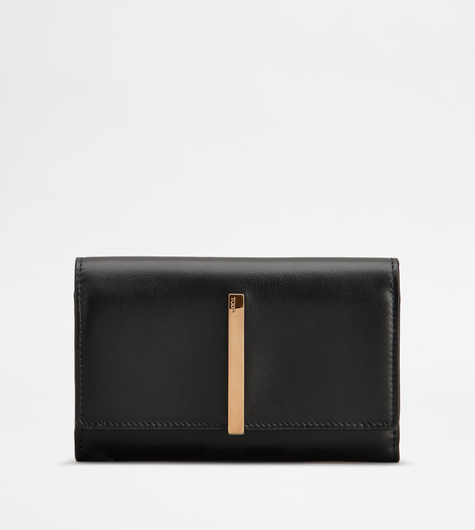 Wallet in soft calfskin leather, with branded metal bar. Featuring a zipped coin pocket, it comes with a banknote compartment, two flat pockets and eight cardslots. - Dimensions: L 5.5 ins x H 3.4 ins x D 1.2 ins - Made in Italy - Wallet - Item crafted in calfskin leather - Branded metal bar accessory on the front - 1 zipped coin pocket - Flap and snap closure - 1 banknote compartment - 2 flat pockets - 8 cardslots - Maintenance and care cards included