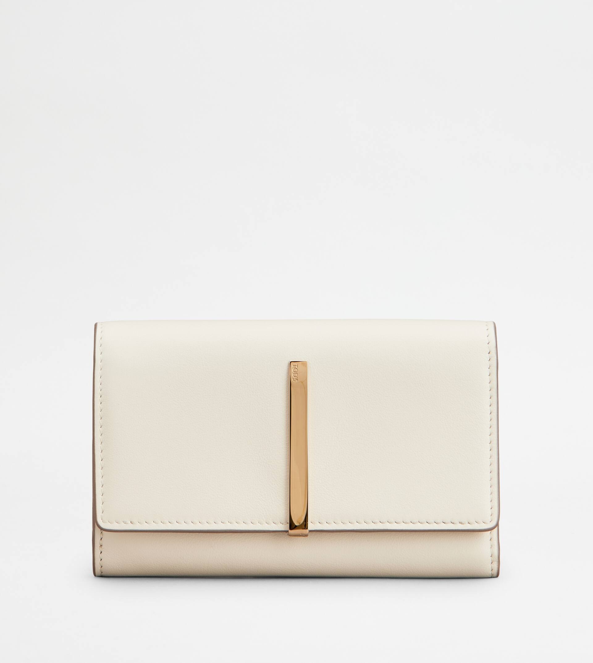 Wallet in soft calfskin leather, with branded metal bar. Featuring a zipped coin pocket, it comes with a banknote compartment, two flat pockets and eight cardslots. - Dimensions: L 5.5 ins x H 3.4 ins x D 1.2 ins - Made in Italy - Wallet - Item crafted in calfskin leather - Branded metal bar accessory on the front - 1 zipped coin pocket - Flap and snap closure - 1 banknote compartment - 2 flat pockets - 8 cardslots - Maintenance and care cards included