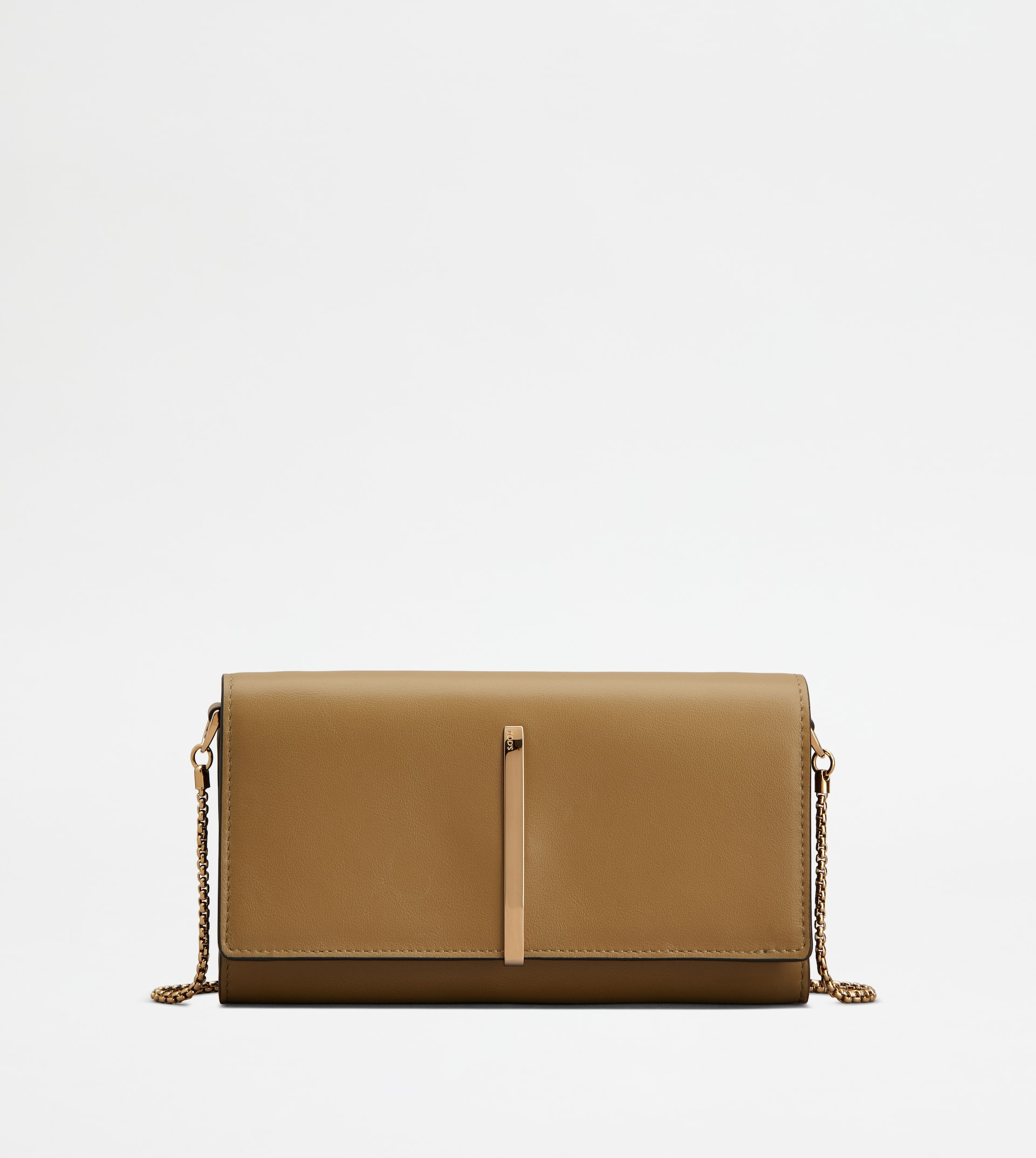 WALLET IN LEATHER WITH SHOULDER STRAP - BROWN