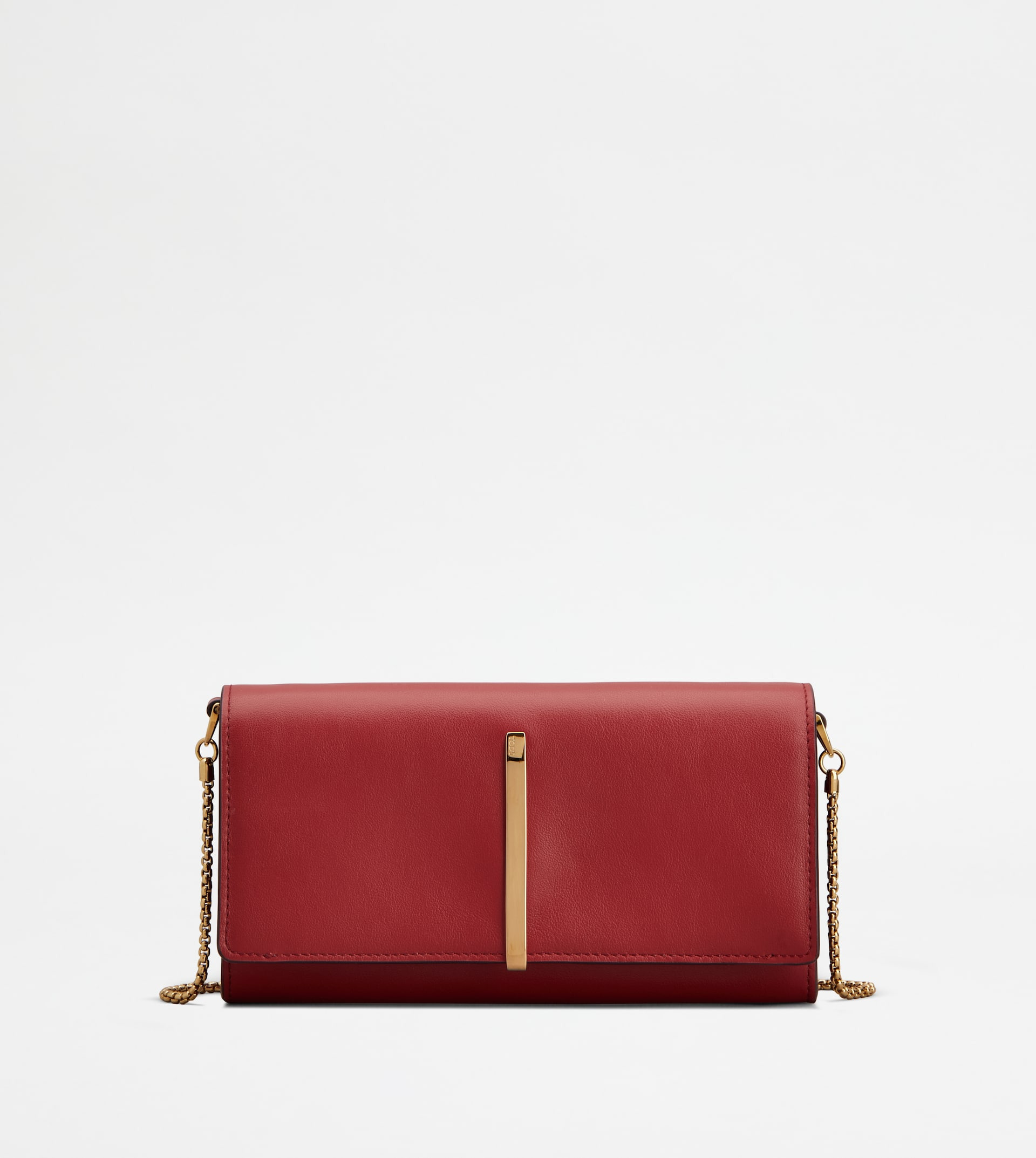Wallet in refined calfskin leather, with branded metal bar accessory. Featuring an elegant removable chain strap in metal, it comes with a gusseted compartment with cardslots and a practical zipped pocket. - Dimensions: L 7.7 ins x H 3.9 ins x D 1.4 ins - Made in Italy - Wallet in leather - Item crafted in calfskin leather - Metal bar accessory on the front - Flap and snap closure - 1 flat pocket - 1 zipped coin pocket - Cardslots - Maintenance and care cards included