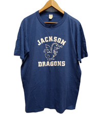 Hi All, please read all the detail and please refer the picture attached. 💥Nice Tees💥 Jackson Dragons Vintage Shirt x Made In Usa (VERY NICE PRINTED TEES) Base color Blue Single Stich Tag -Velva Sheen Material 50% Cotton 50% Polyester Size On Tag XL Manual Measurement Chest To Chest 22.50 Inches Lenght 29 Inches Shouder 20 Inches Overall in good condition Used Item - Condition Scale 8/10 No Stain No Hole Made In Usa Please do not expect item like new or pristine condition Payment : PayPal only Ready to shipping 1 to 3 days after complete payment Note : Start from 20 Feb 2021 onward, all parcell item will curier using DHL - Most effective delivery. Shipping via DHL with trackking number. Please leave me your contact number, as the shipping company always need the receiver phone number to help delivering process more easier and efficient. Buying more you will save on shipping price NO RETURNS, EXCHANGE OR REFUND, item sold as it is. PLEASE READ ALL DETAIL AND SEE ALL THE PICTURES PLEASE INBOX ME, FOR NEGOTIATE ABOUT PRICE (DON'T WAIT ME TO DROP THE PRICE) AND WANT TO ASK OTHER DETAIL ABOUT THE ITEM, FEEL FREE TO DO THAT.. I WILL RESPOND A. S. A. P Thank you Storage Ref No : 026