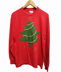 Hi All, please read all the detail and please refer the picture attached. Vintage Christmas Tree Long Sleeves Tees Base color Red Size On Tag L 42-44 Manual Measurement Chest To Chest 20 Inches Lenght 27.50 Inches Shoulders 20 Inches Sleeve Length 24 Inches Overall in good condition Used Item - Condition Scale 8.5/10 Made In Usa Please do not expect item like new or pristine condition Payment : PayPal only Ready to shipping 1 to 3 days after complete payment Note : Start from 20 Feb 2021 onward, all parcell item will curier using DHL - Most effective delivery. Shipping via DHL with trackking number. Please leave me your contact number, as the shipping company always need the receiver phone number to help delivering process more easier and efficient. Buying more you will save on shipping price NO RETURNS, EXCHANGE OR REFUND, item sold as it is. PLEASE READ ALL DETAIL AND SEE ALL THE PICTURES PLEASE INBOX ME, FOR NEGOTIATE ABOUT PRICE (DON'T WAIT ME TO DROP THE PRICE) AND WANT TO ASK OTHER DETAIL ABOUT THE ITEM, FEEL FREE TO DO THAT.. I WILL RESPOND A. S. A. P Thank you Storage Ref No : B062 (Tok)