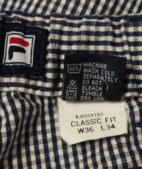 Hi All, please read all the detail and please refer the picture attached. Vintage Fila Sport Pants x Made In U.S.A Base color Blue / Grey Size On Tag W36 L34 Manual Measurement Waist 34 Inches Inseam 27 Inches Leg Opening 8 Inches Front Rise 14 Inches Thigh 13 Inches Knee 10 Inches Overall in good condition Used Item - Condition Scale 9/10 - Good Condition For Vintage Item Made In U.S.A Please do not expect item like new or pristine condition Payment : PayPal only Ready to shipping 1 to 3 days after complete payment Note : Start from 20 Feb 2021 onward, all parcell item will curier using DHL - Most effective delivery. Shipping via DHL with trackking number. Please leave me your contact number, as the shipping company always need the receiver phone number to help delivering process more easier and efficient. Buying more you will save on shipping price NO RETURNS, EXCHANGE OR REFUND, item sold as it is. PLEASE READ ALL DETAIL AND SEE ALL THE PICTURES PLEASE INBOX ME, FOR NEGOTIATE ABOUT PRICE (DON'T WAIT ME TO DROP THE PRICE) AND WANT TO ASK OTHER DETAIL ABOUT THE ITEM, FEEL FREE TO DO THAT.. I WILL RESPOND A. S. A. P Thank you Storage Ref No : B00180 (Tok)