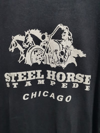 Hi All, please read all the detail and please refer the picture attached. Vintage Steel Horse Stampede Chicago Shirt Base color Black (Some Area Faded) Tag - Tennessee River Size On Tag XL Manual Measurements Chest To Chest 23.50 Inches Lenght 30 Inches Shoulder 23 Inches Overall in good condition Used Item - Condition Scale 7/10 No Stain No Hole Defect - Colour Faded At Upper Shoulders - Refer Photo No 10 & 11 Made In Mexico Please do not expect item like new or pristine condition Payment : PayPal only Ready to shipping 1 to 3 days after complete payment Note : Start from 20 Feb 2021 onward, all parcell item will curier using DHL - Most effective delivery. Shipping via DHL with trackking number. Please leave me your contact number, as the shipping company always need the receiver phone number to help delivering process more easier and efficient. Buying more you will save on shipping price NO RETURNS, EXCHANGE OR REFUND, item sold as it is. PLEASE READ ALL DETAIL AND SEE ALL THE PICTURES PLEASE INBOX ME, FOR NEGOTIATE ABOUT PRICE (DON'T WAIT ME TO DROP THE PRICE) AND WANT TO ASK OTHER DETAIL ABOUT THE ITEM, FEEL FREE TO DO THAT.. I WILL RESPOND A. S. A. P Thank you Storage Ref No : F8A (TOK)