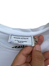 CODE ITEM: T804(As a reference for the seller) Brand:Maison Kitsune Made in: Portugal Size: M Please see manual measurement) Armpit: 19 inches Lenght: 26 inches Waist: inches Arm lenght: inches Shoulder : inches (all measurement on lying flat) Material: 100%Cotton Please see all the picture for more detail. *Please provide telephone number after purchase, We need to fill the postage form for delivery process. Thank you