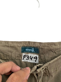 CODE ITEM: P349(As a reference for the seller) Brand: 45rpm Made in:Japan Size:na Manual measurement Waist: 31 inches Outseam: 39 inches Inseam: 30 inches Legs: 18.5 inches Tight: inches Knee: 21 inches Material: Have defect Please see all the picture for more detail. *Please provide telephone number after purchase, We need to fill the postage form for delivery process. Thank you