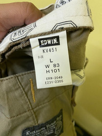 CODE ITEM: P226 ( As a reference for the seller) Brand: EDWIN Made in:CHINA Size:L Manual measurement Waist: 36 inches Outseam: 42 inches Inseam: 33 inches Legs: 17 inches Tight: 27 inches Knee: inches Material: 78%COTTON 20%POLYSTER 2% UNKNOWN Please see all the picture for more detail. *Please provide telephone number after purchase, We need to fill the postage form for delivery process. Thank you