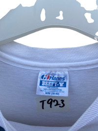 CODE ITEM: T923(As a reference for the seller) Brand:Hanes Made in:USA Size: M Please see manual measurement) Armpit: 18.5 inches Lenght: 27 inches Waist: inches Arm lenght: inches Shoulder : inches (all measurement on lying flat) Material: 100%cotton Please see all the picture for more detail. *Please provide telephone number after purchase, We need to fill the postage form for delivery process. Thank you