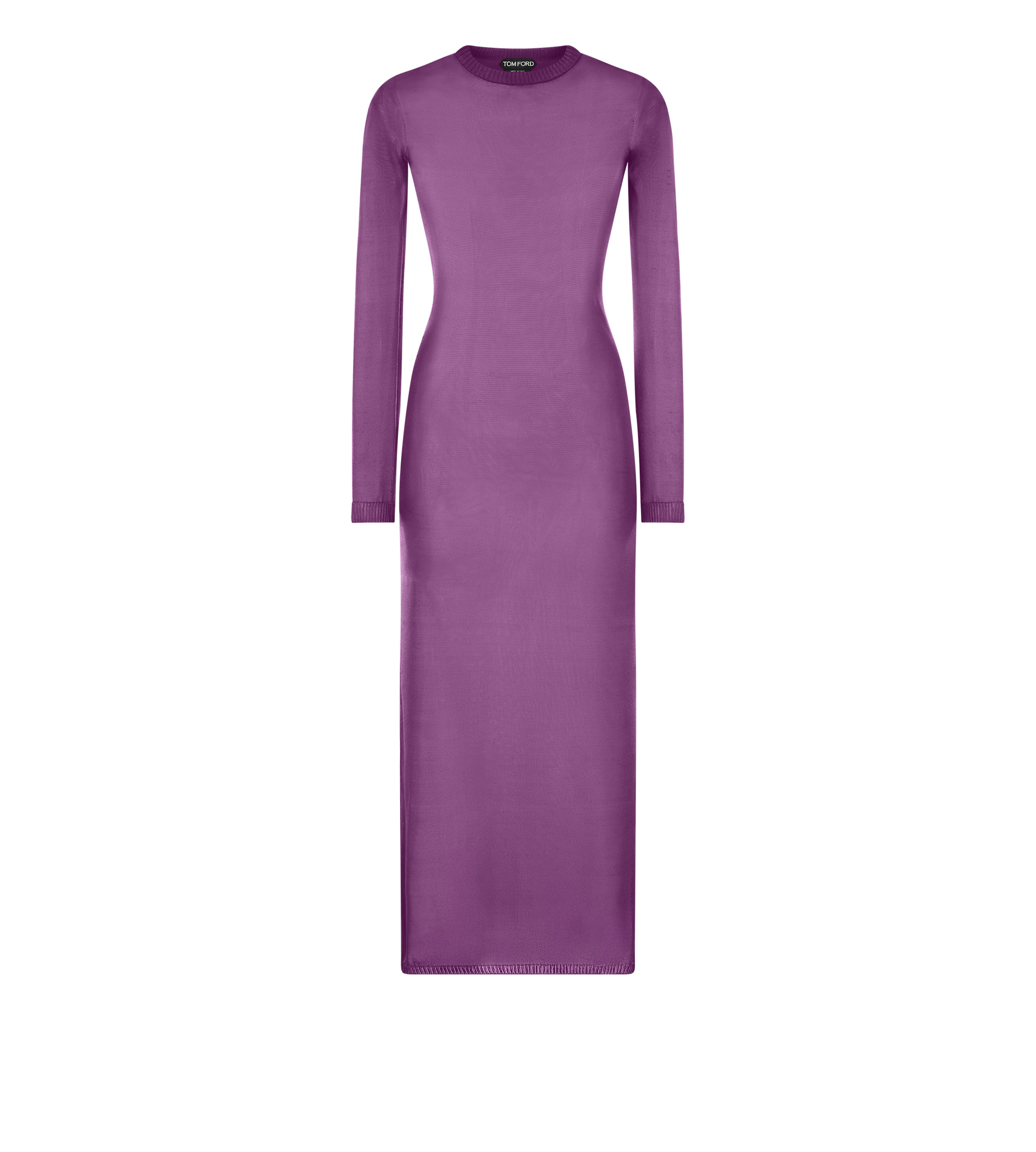 - ANKLE LENGTH DRESS - CREWNECK - RIBBED COLLAR AND CUFFS - CRAFTED IN WHOLE GARMENT EXTRA LIGHT SILK - 18 GAUGE - 100% SILK