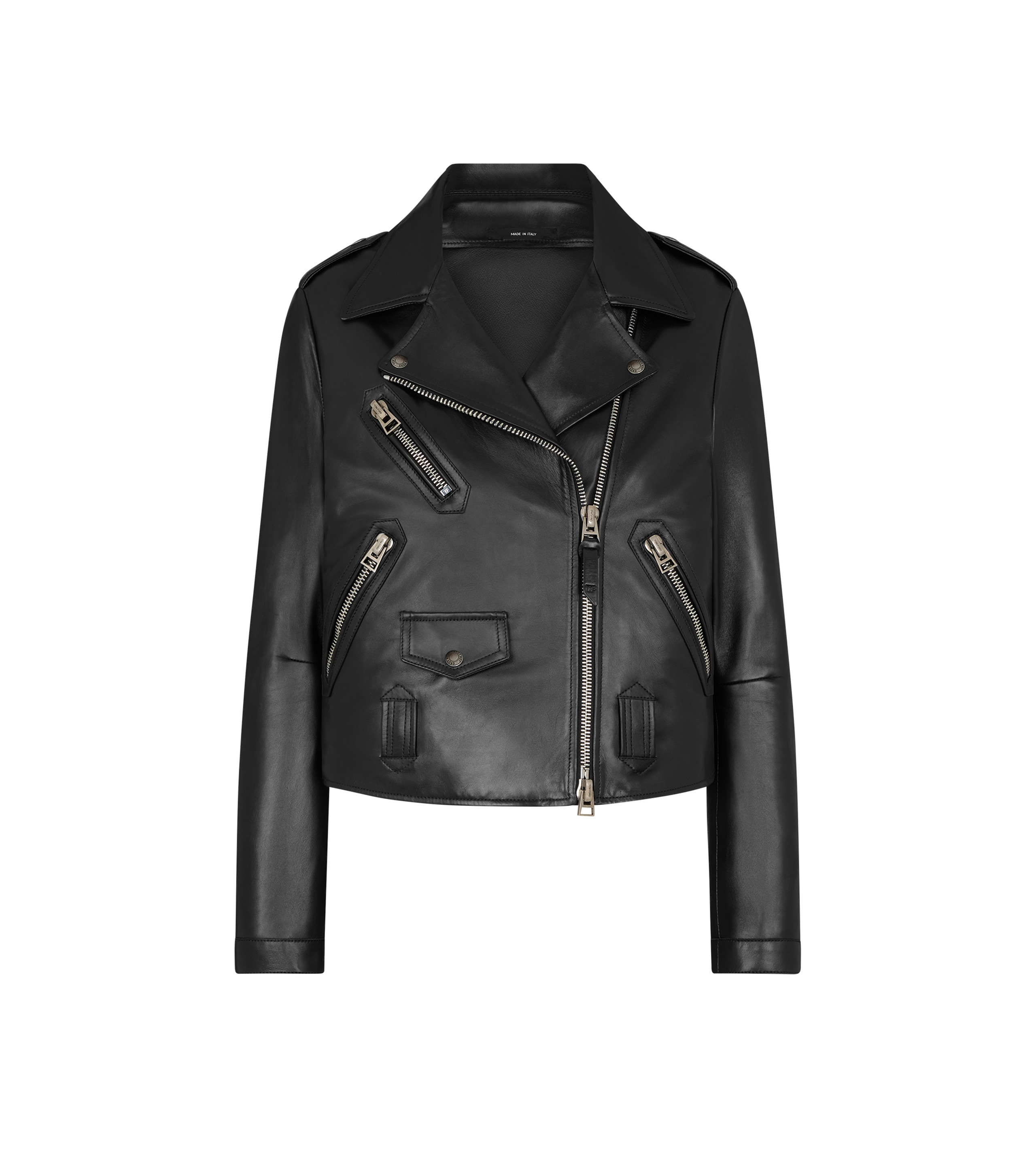 - ASYMMETRIC BIKER JACKET - SLANTED DOUBLE-ENDED ICONIC ZIP FRONT CLOSURE - LEATHER ZIP PULLER WITH EMBOSSED TF LOGO - SLANTED ZIPPED CHEST AND FRONT POCKETS - TOM FORD SIGNATURE PRESS SNAP CLOSURE ALONG COLLAR, POCKET, EPAULETTES, AND CUFFS - TOM FORD SIGNATURE LEATHER GRAB HANDLE WITH LOGOED SNAP - ZIPPED CUFFS - LOOPED BOTTOM - VINTAGE SILVER FINISH HARDWARE - UNLINED, TWILL LINING ONLY FOR SLEEVES - CRAFTED IN SMOOTH NAPPA - 100% LAMB LEATHER
