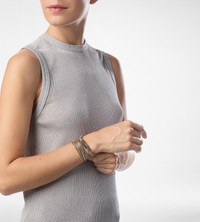 PRODUCT NO: 5955286902 A statement TOM FORD bracelet featuring a triple-wrap tubular snake chain adorned with refined hexagonal detailing. Finished with a rectangular plate showcasing a T-shaped cutout. Composition: 100% brass, nickel free Size: one size Made in Italy