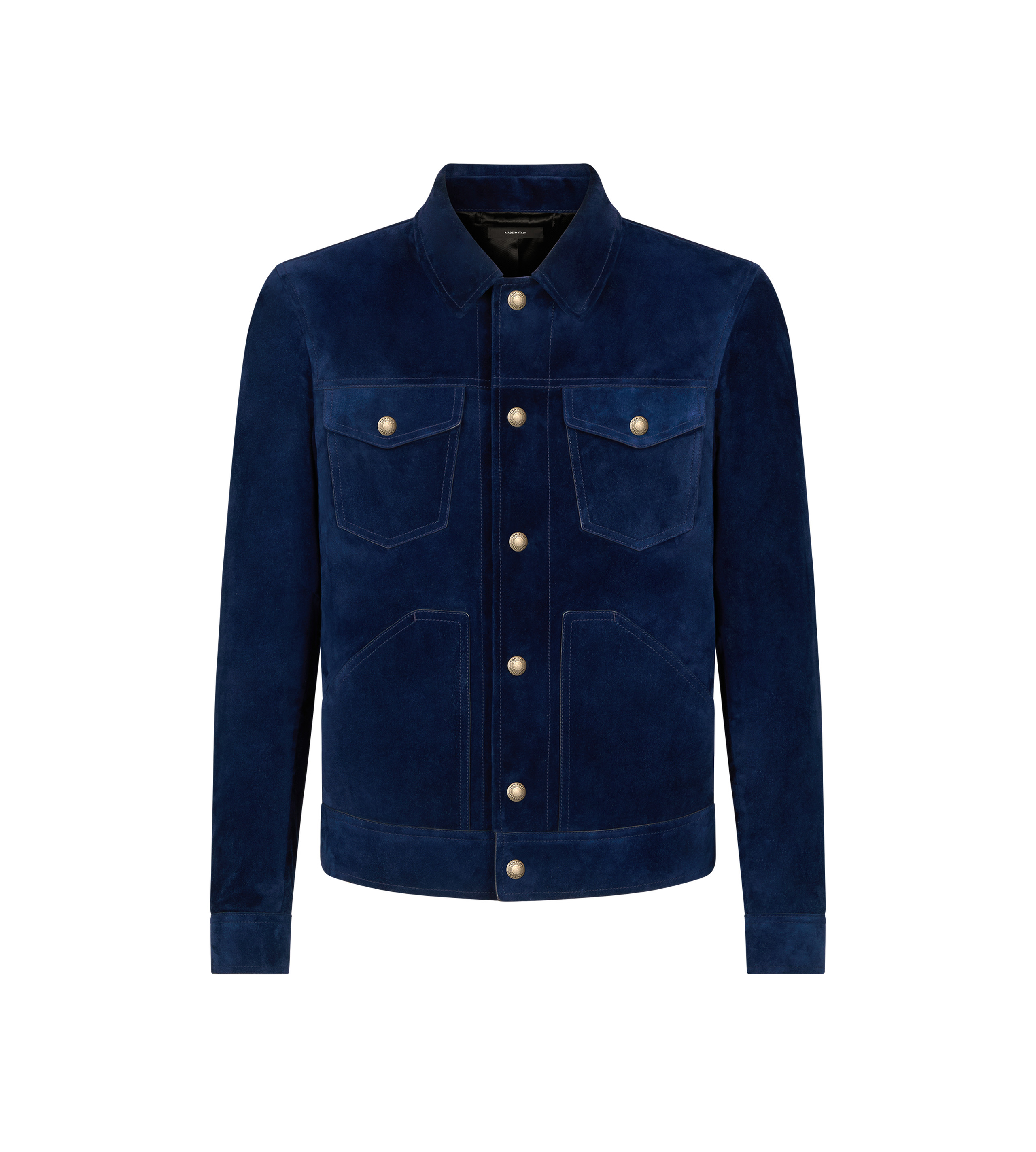 - WESTERN JACKET - BUTTERY SUEDE AND SMOOTH LEATHER FULLY LINED - CASHMERE SUEDE HALF LINED - BLACK STYLE WITH GOLD BRASS BUTTONS - CLASSIC FIT - TOM FORD SIGNATURE PRESS STUD FASTENING ALONG FRONT OPENING, POCKETS AND CUFFS - TOM FORD SIGNATURE LEATHER GRAB HANDLE - CENTRE BACK LENGTH 59CM - 100% LEATHER - MADE IN ITALY