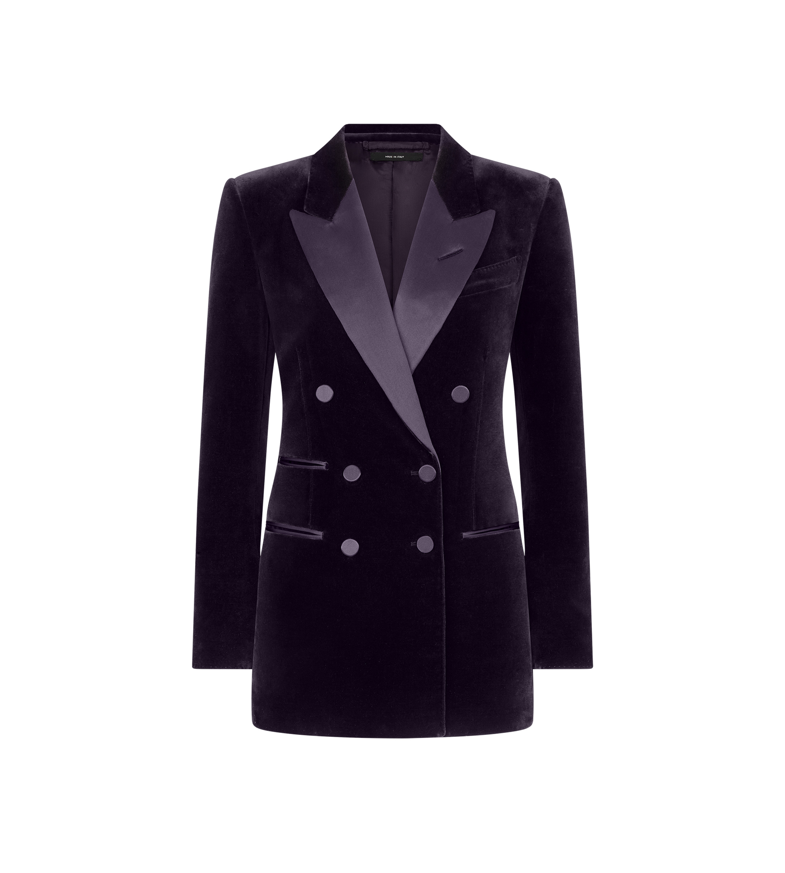 - DOUBLE BREASTED JACKET - SATIN-TRIMMED DETAILING ON FRONT POCKETS AND LAPELS - JET POCKETS - BARCHETTA CHEST POCKET - HAND-MADE LAPEL BUTTONHOLE - TOM FORD DESIGNS FEATURE A LONGER FIRST FINAL BUTTONHOLE ON CUFFS - SATIN COVERED BUTTONS - WITH INTERNAL POCKET - INTERNAL SIGNATURE HORN BUTTONS - 5 KISSING CUFF BUTTONS - SINGLE VENT - AMF STITCHING - FULLY LINED - FULLY CANVASSED - CRAFTED IN STRETCH COTTON VELVET - 98% COTTON 2% ELASTANE