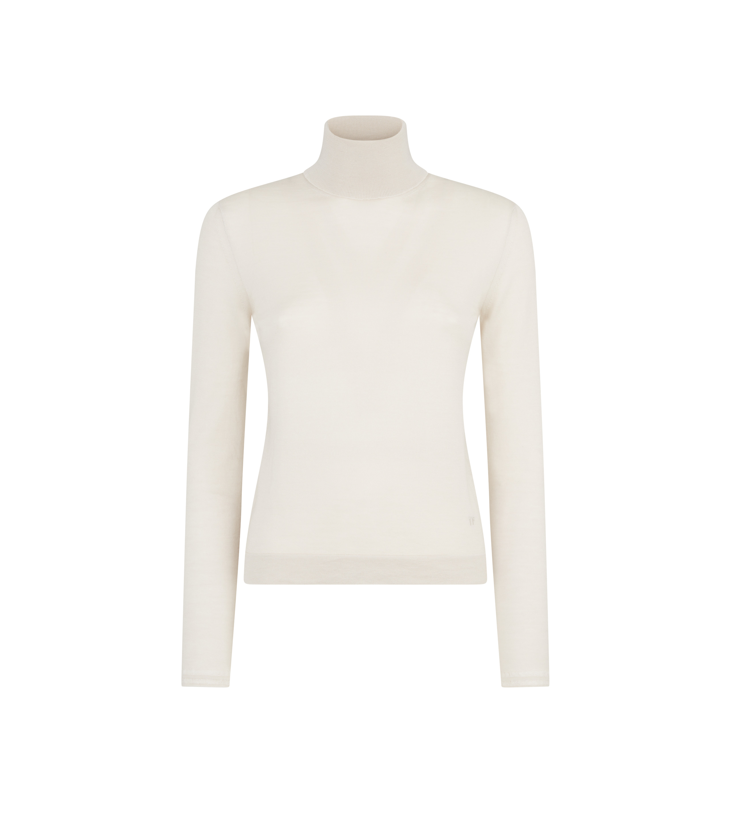 - TURTLENECK KNITTED TOP - SHEER VISCOSE DETAIL ALONG CUFFS - TF EMBROIDERY LOGO - CRAFTED IN FINE CASHMERE SILK - GAUGE 18 - 70% CASHMERE 30% SILK
