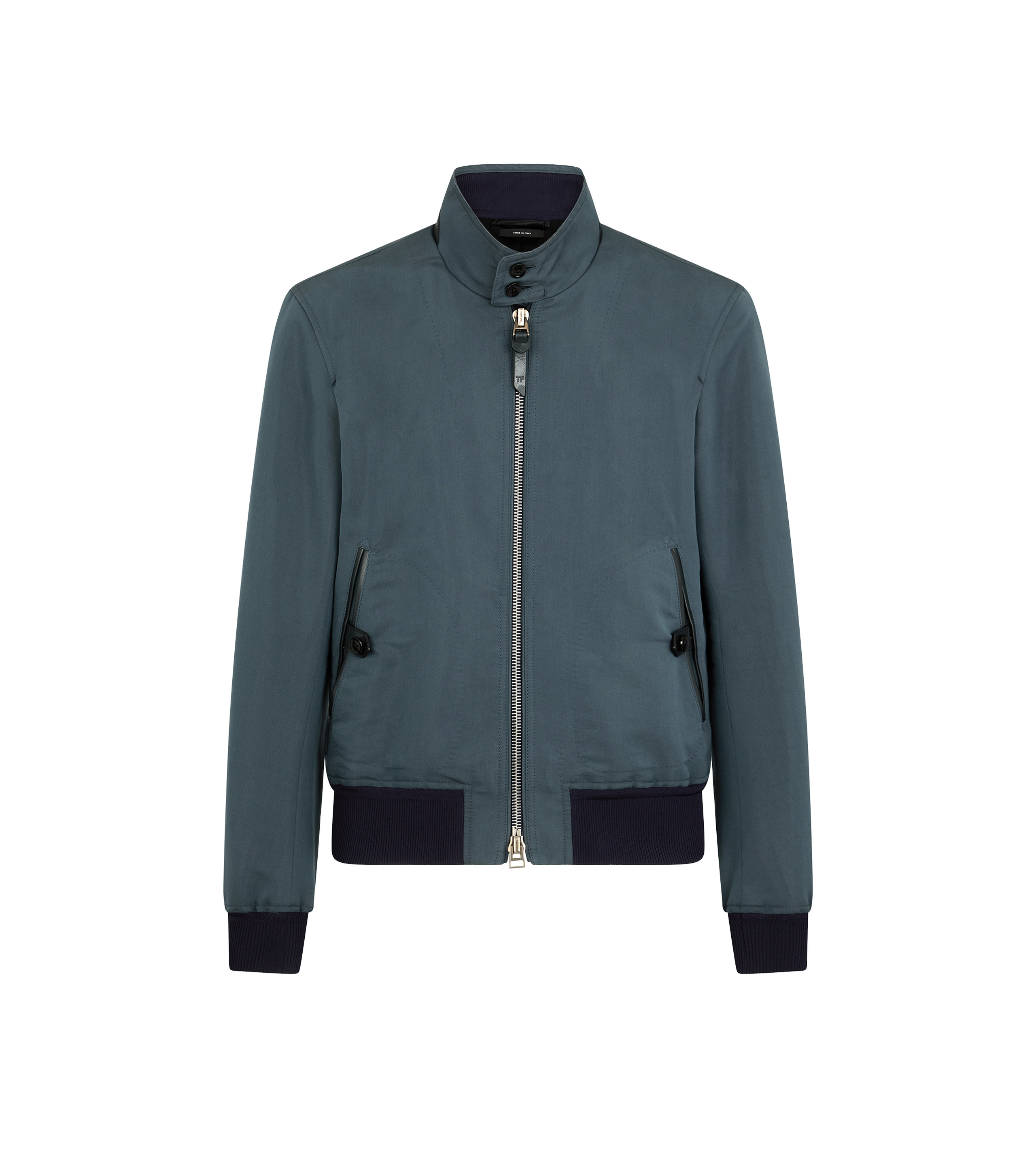- HARRINGTON - HALF LINED - CLASSIC FIT - LEATHER HALFMOON UNDERCOLLAR - KNITTED RIB TRIM ALONG WAIST AND CUFFS - LEATHER PIPING ALONG FRONT ZIP OPENING - HAND STITCHED BUTTONHOLES AND BARTACK DETAIL - DOUBLE JET POCKET WITH LEATHER FRAMING - TOM FORD SIGNATURE HORN BUTTONS ALONG COLLAR AND POCKETS - TOM FORD SIGNATURE DOUBLE ZIP CLOSURE - TOM FORD SIGNATURE LEATHER GRAB HANDLE - CENTER BACK LENGTH 61CM - 60% COTTON 40% SILK - MADE N ITALY
