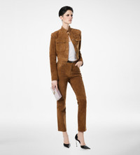 PRODUCT NO: CSL795-LEX417 A cropped officer jacket in rich lamb suede, balancing sharp structure with TOM FORD’s signature precision. Composition: 100% Lamb Leather Lining: 100% Viscose Made in Italy
