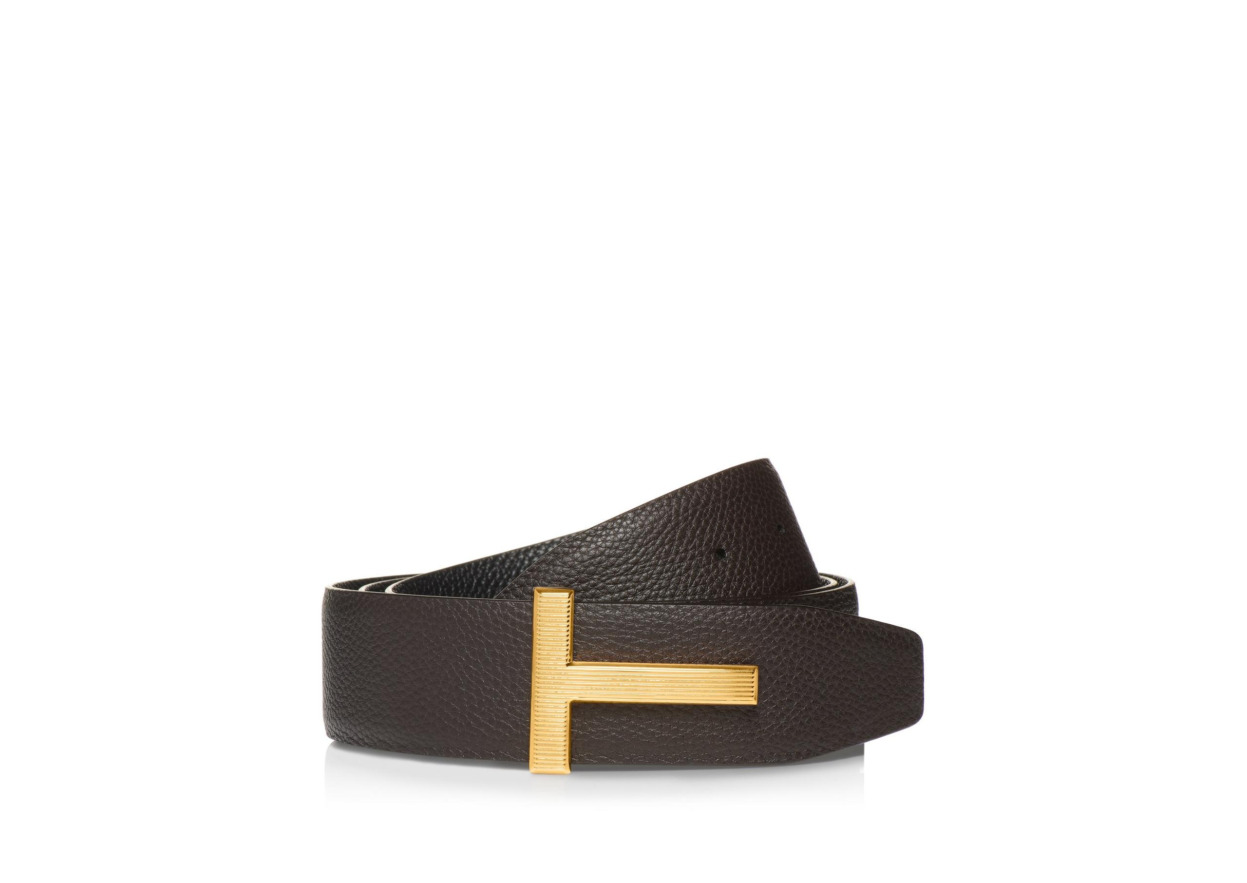 PRODUCT NO: TB246-LCL236G Available in grain leather. The metal T loop style features a formal buckle that elevates the design and ensure brand recognizability. It is offered in color brown and black with a luxurious gold brass. Galvanic: 100% brass gold galvanization, lining: 100% calf leather, composition: 100% calf leather Dimensions: 40 MM Made in Italy