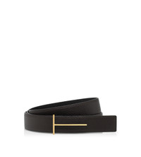 PRODUCT NO: TB330-LCL236G A refined reversible belt in grain calf leather, finished with the signature TOM FORD T buckle for elevated versatility. Composition: 100% calf leather Made in Italy