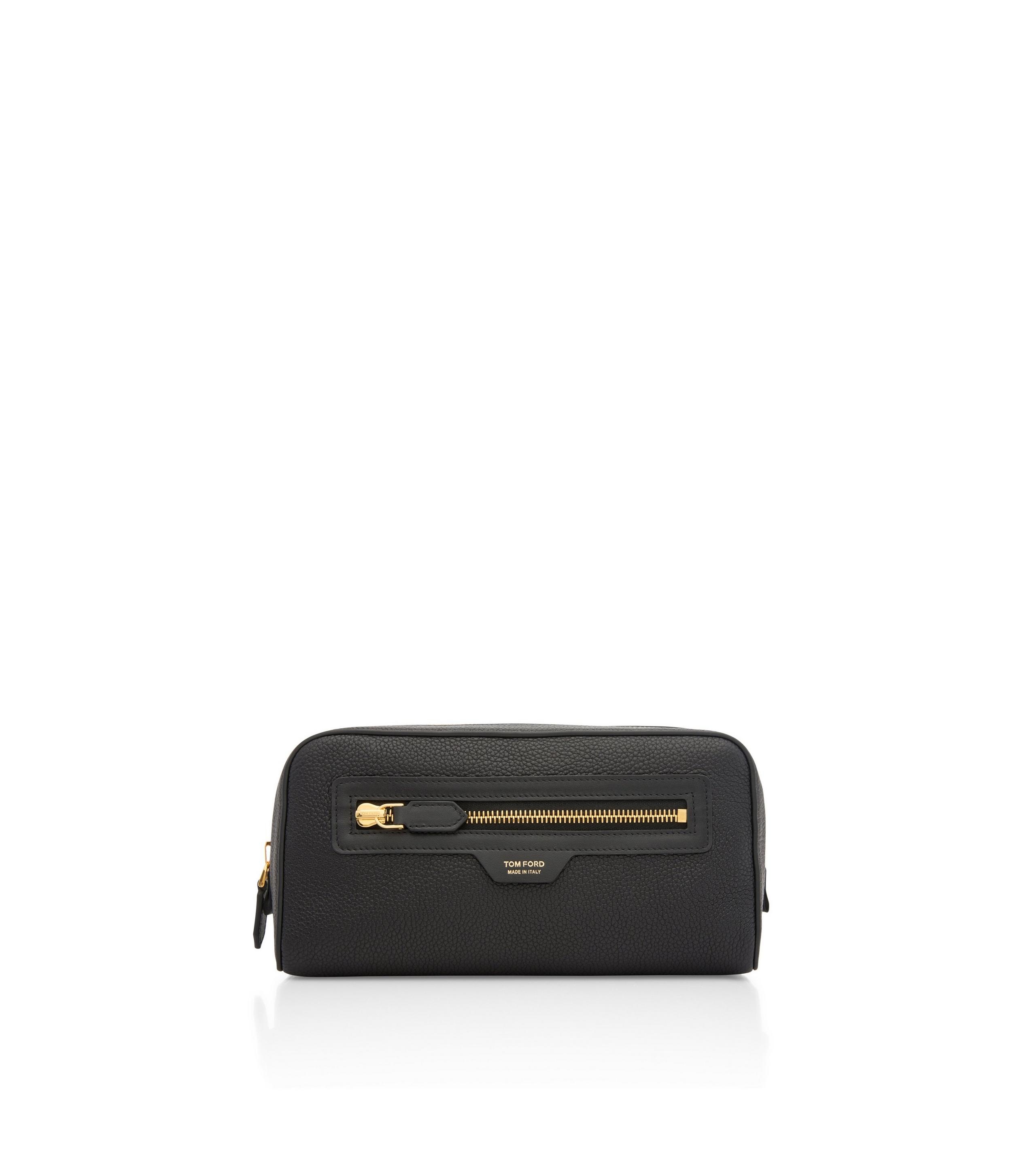 - SMART WASH BAG - EXTERNAL ZIPPED POCKET - INTERNAL OPEN POCKET - FRONT ZIP SMOOTH LEATHER FRAMING - TOM FORD EMBOSSED LOGO - EXTERIOR: 100% LEATHER - HARDWARE: 100% BRASS GOLD GALVANIZATION - DIMENSIONS: 25 X 12 X 8,5CM - MADE IN ITALY