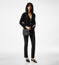 PRODUCT NO: 5689656962 Refined and versatile, the Tara Mini Crossbody in grain leather is defined by the hanging T closure, both decorative and functional. Its pale gold finish adds timeless allure to a minimalist profile. Composition: 100% calfskin. Dimension: 20x18,5x7 cm Made in Italy.