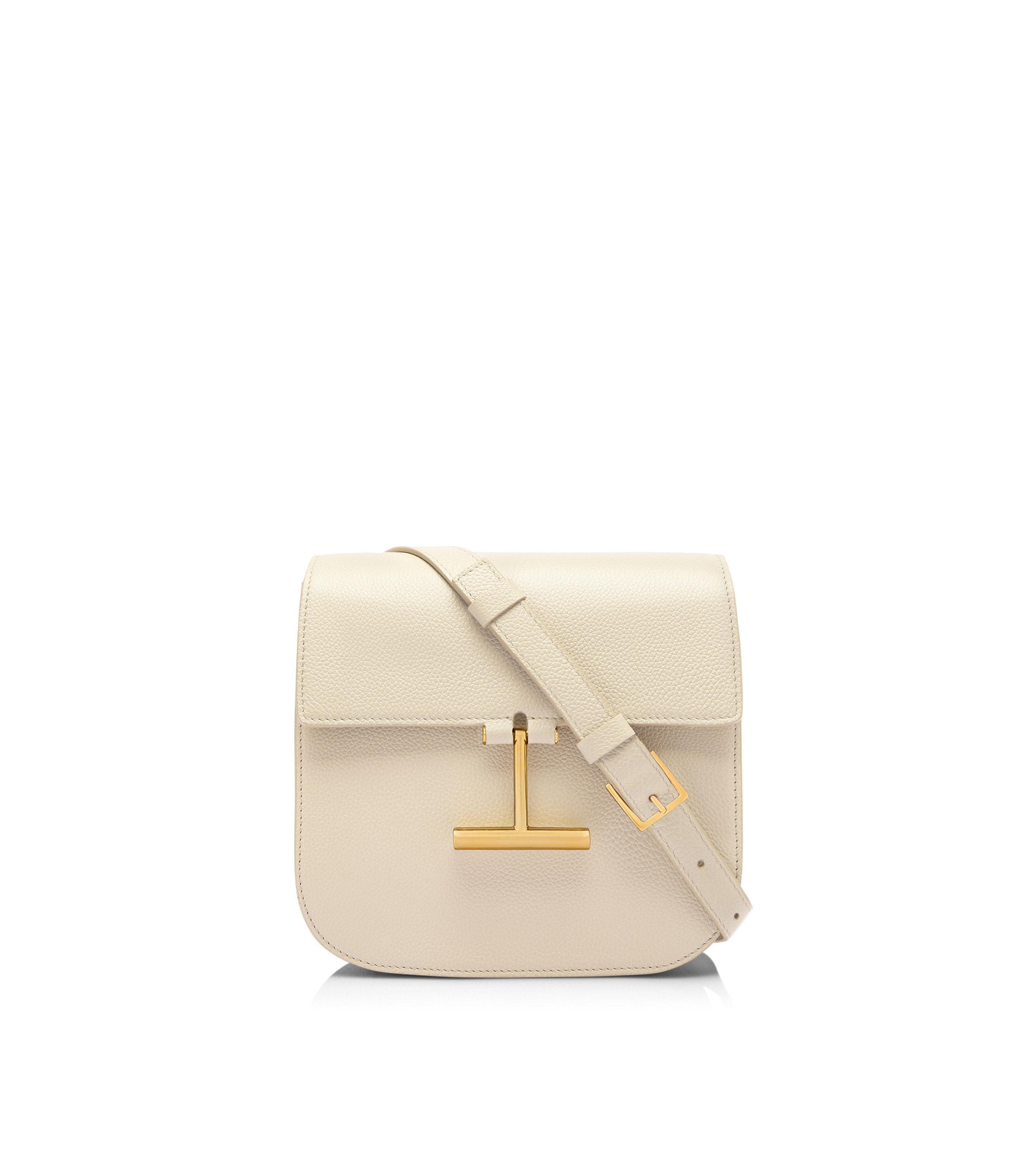 PRODUCT NO: 5221240515 Refined and versatile, the Tara Mini Crossbody in grain leather is defined by the hanging T closure, both decorative and functional. Its pale gold finish adds timeless allure to a minimalist profile. Composition: 100% calfskin. Dimension: 20x18,5x7 cm Made in Italy.
