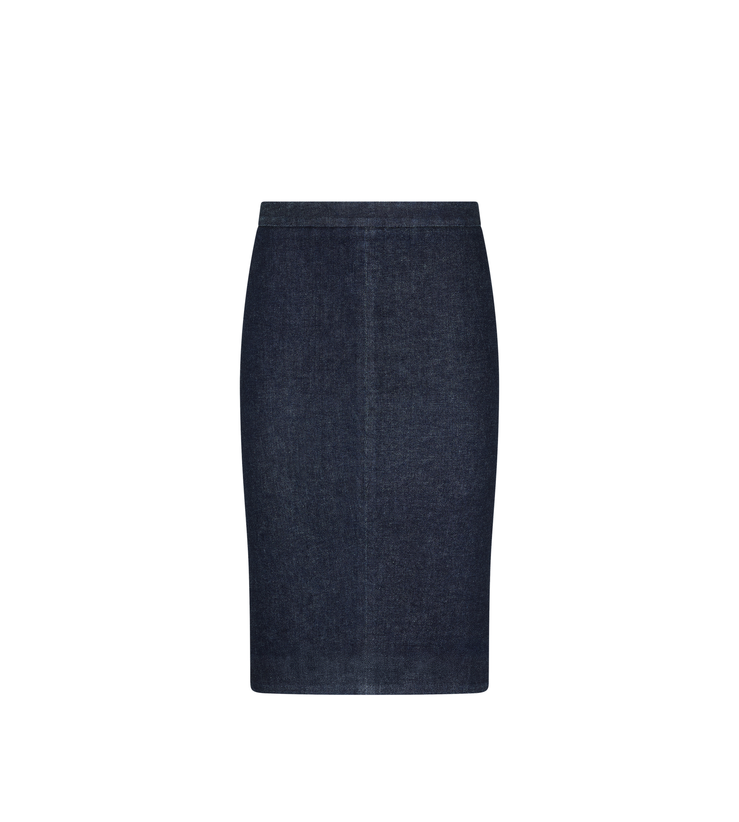 - KNEE-LENGTH TAILORED SKIRT - SHAPED CUT ON THE BACK THAT CREATES A DOUBLE PLEAT VENT EFFECT - INVISIBLE SIDE ZIP - FULLY LINED - CRAFTED IN STRETCH DENIM - 98% COTTON 2% ELASTANE