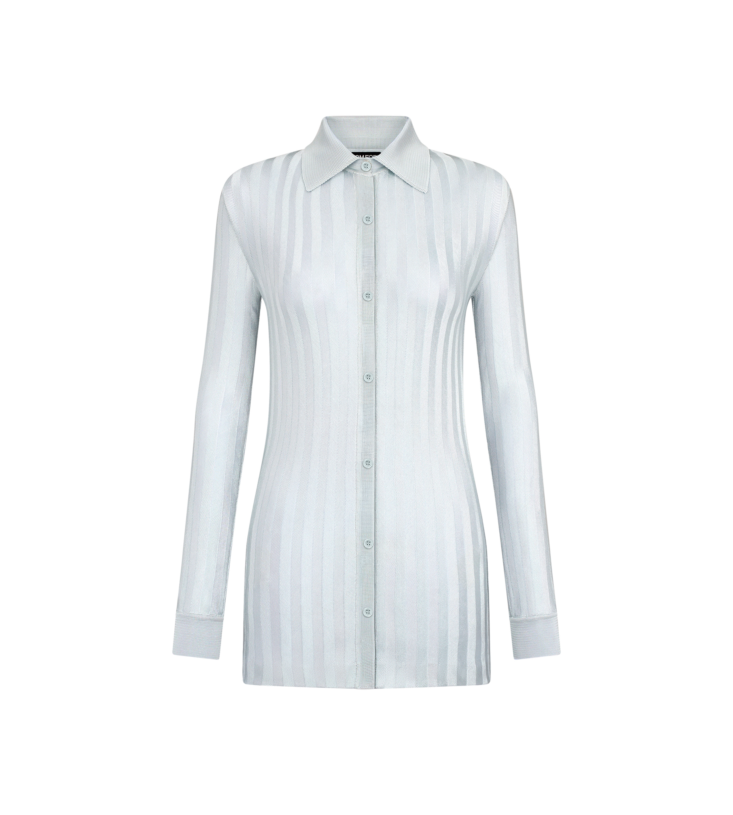 - LONG SLEEVE KNITTED SHIRT - RELAXED FIT - MATTE AND SHINY VERTICAL STRIPES - MOTHER OF PEARL BUTTONS ALONG FRONT OPENING - CRAFTED IN HERRINGBONE STRIPE VISCOSE - 18 GAUGE - 100% VISCOSE