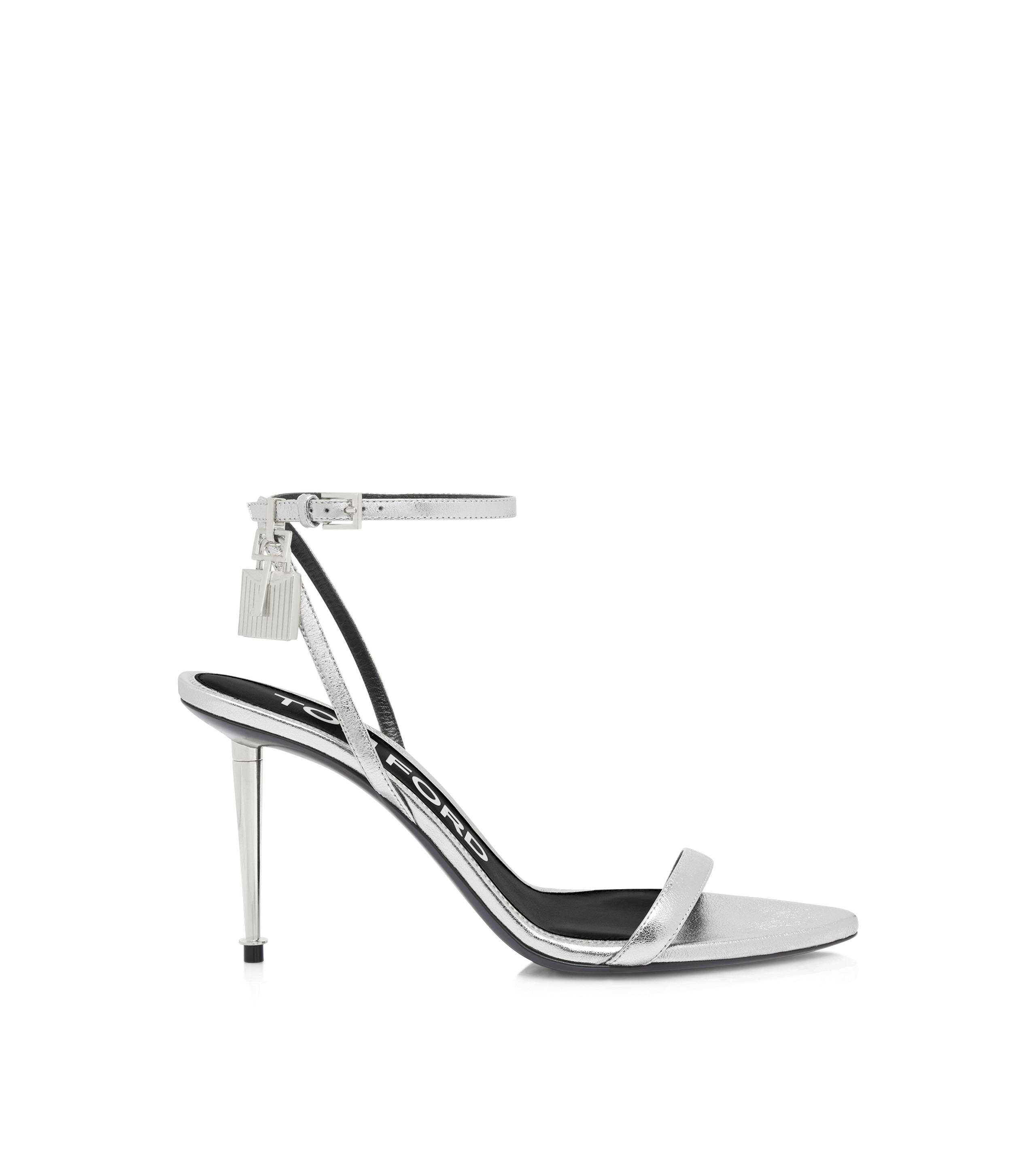 - POINTY TOE SHAPE - SIGNATURE PADLOCK METAL HARDWARE - 85 MM ICONIC METAL SPIKE HEEL - ADJUSTABLE BUCKLE ANKLE STRAP - BUCKLES WITH ENGRAVED TOM FORD LOGO - LINING: BLACK LEATHER - INSOLE: BLACK LEATHER WITH GOLD OR SILVER EMBOSSED TOM FORD - SOLE: LEATHER - 100% LEATHER - MADE IN ITALY