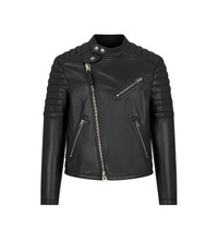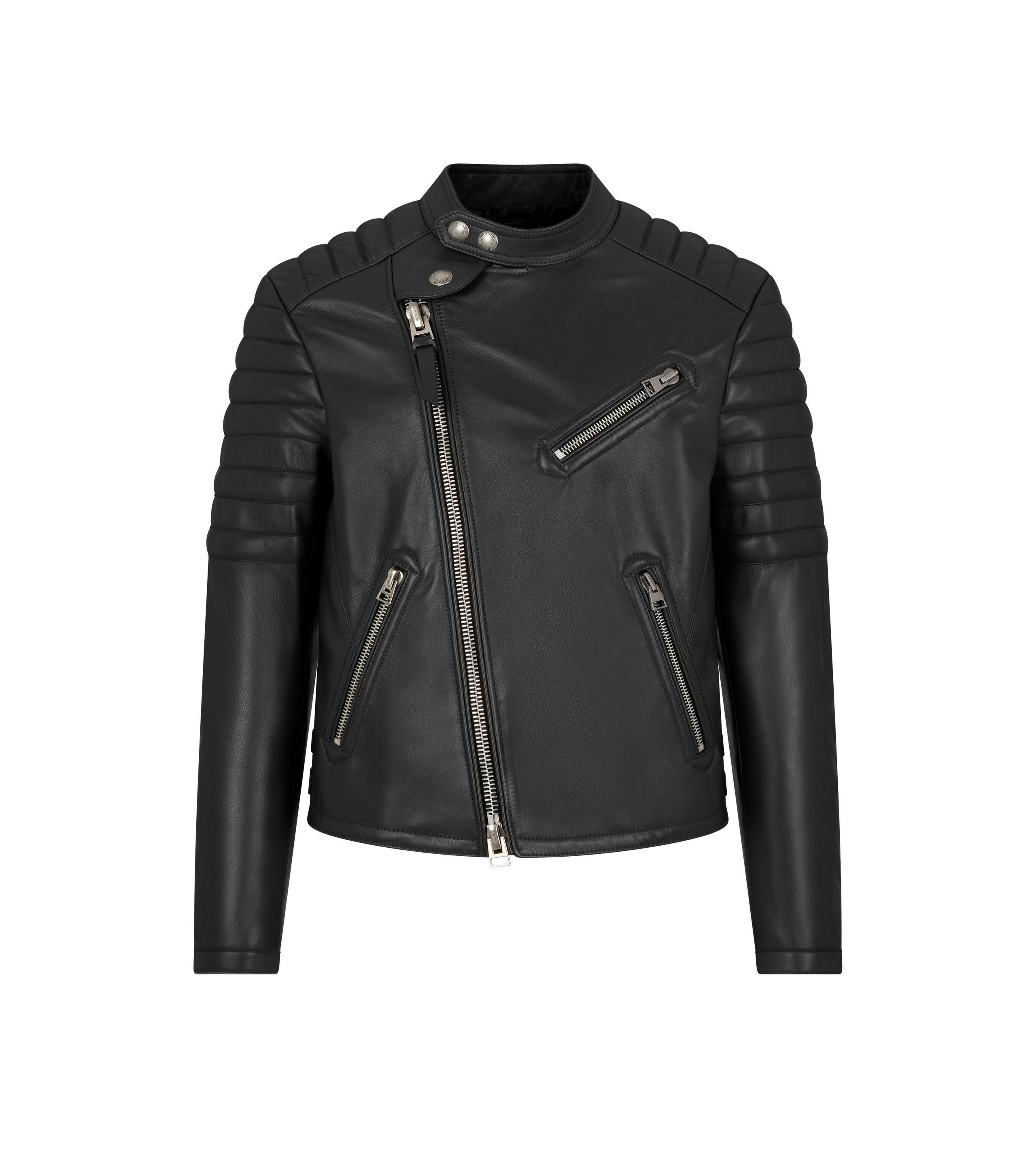 - ICON BIKER - FULLY LINED ICON BIKER JACKET - BIKER FIT - CLASSIC BIKER COLLAR WITH PRESS STUD FASTENING - ASYMMETRICAL FULL ZIP THROUGH - MULTIPLE ZIP DETAILING - OVATTA (POLYESTER LIGHT PADDED FILL) SPONGING ALONG SHOULDER GIVES 3D APPEARANCE AND SHAPE - TOM FORD SIGNATURE DOUBLE ZIP CLOSURE - CENTRE BACK LENGTH 58.5CM - 100% CALF LEATHER - MADE IN ITALY