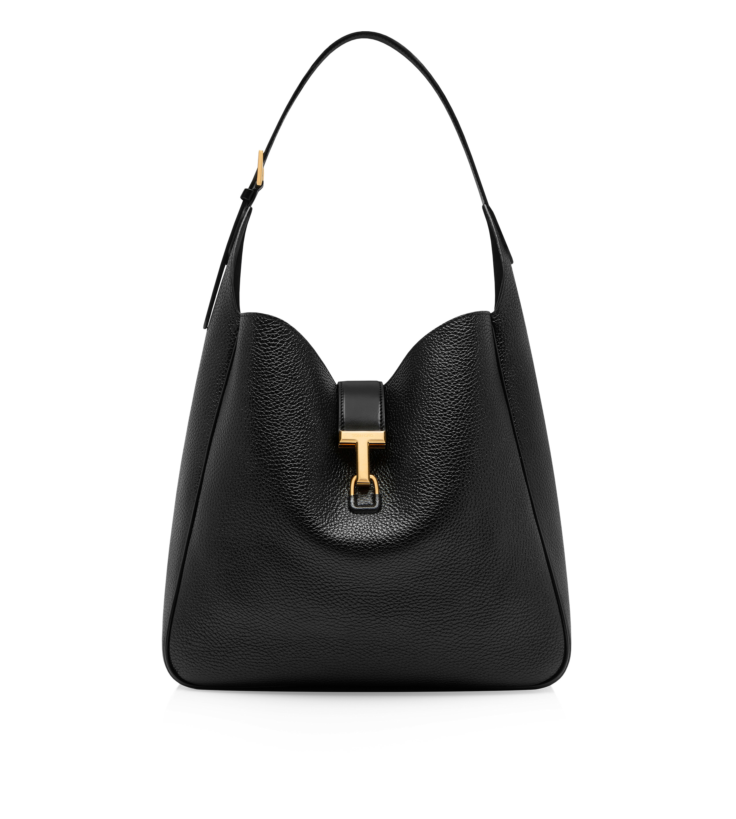 - T PIN CLASP DETAIL WITH ENGRAVED TOM FORD LOGO - ADJUSTABLE LEATHER SHOULDER STRAP - 1 COMPARTMENT - 1 INNER ZIPPED POCKET - 1 INNER OPEN POCKET - LINING: SUEDE LEATHER - DIMENSIONS: 35 X 33 X 13 CM - MEDIUM STRAP DROP: 26 CM - 100% CALFSKIN