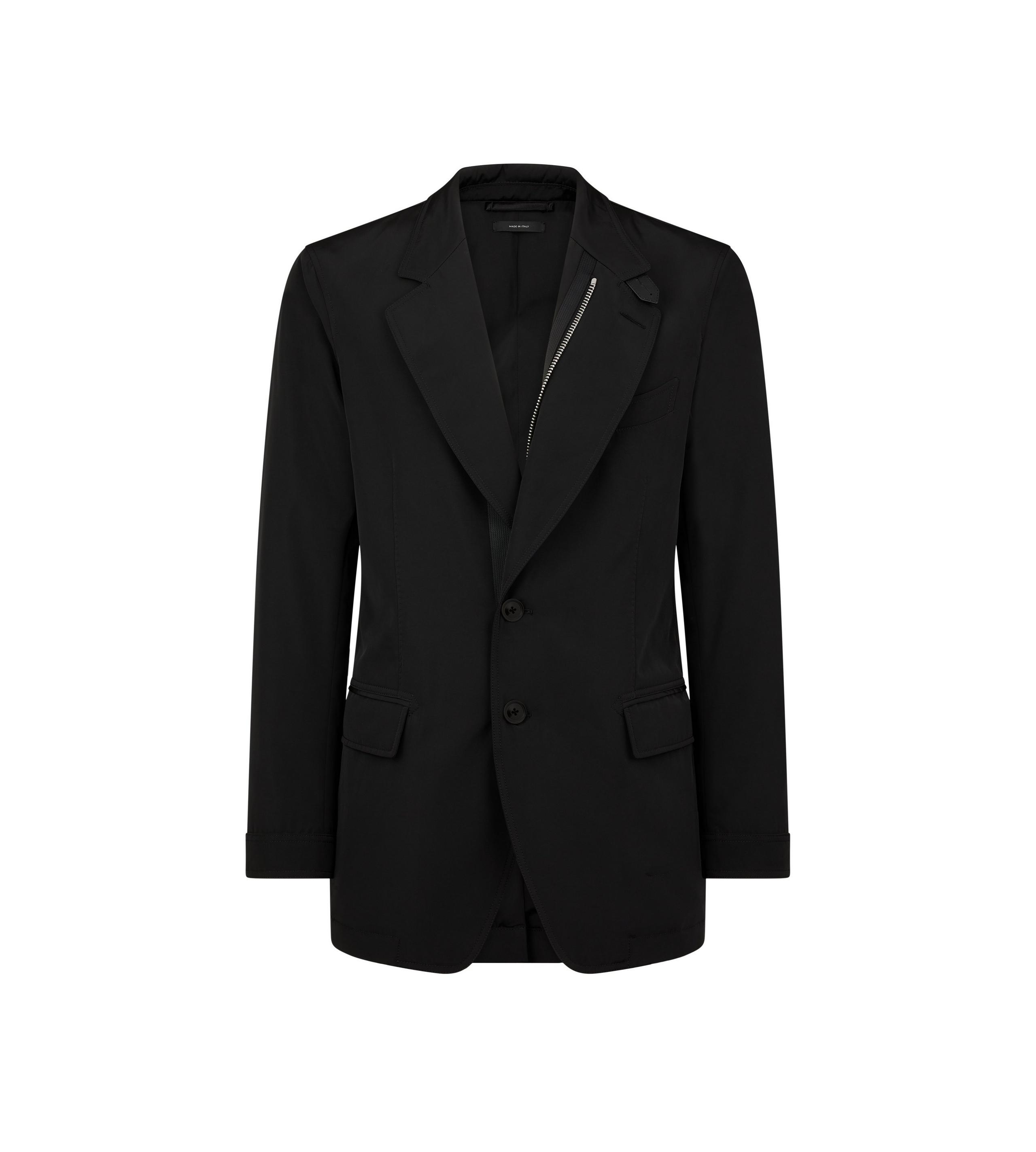 - LIGHT-FILL SARTORIAL BLAZER - SELF FULLY LINED - TAILORED FIT - LEATHER UNDERCOLLAR WTH LOZENGE TAB DETAIL - NOTCH LAPEL - LOWER FRONT FLAP POCKETS - BUTTON CLOSURE ALONG FRONT PLACKET WITH CONCEALED ZIP THROUGH - TOM FORD SIGNATURE LEATHER GRAB HANDLE - CENTRE BACK LENGTH 76CM - 100% POLYESTER - MADE IN ITALY