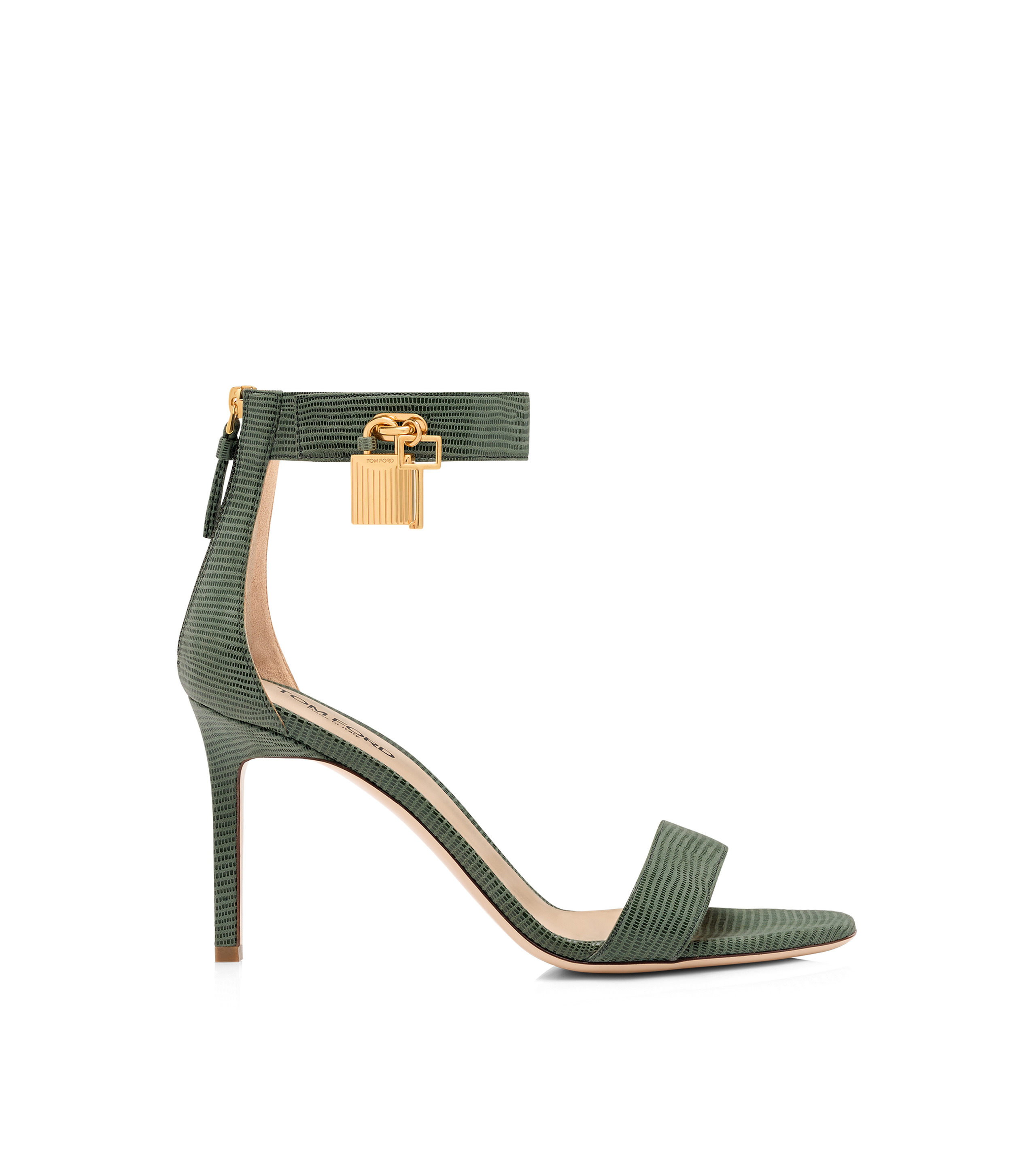 LIZARD-EFFECT SUEDE LEATHER PADLOCK SANDAL