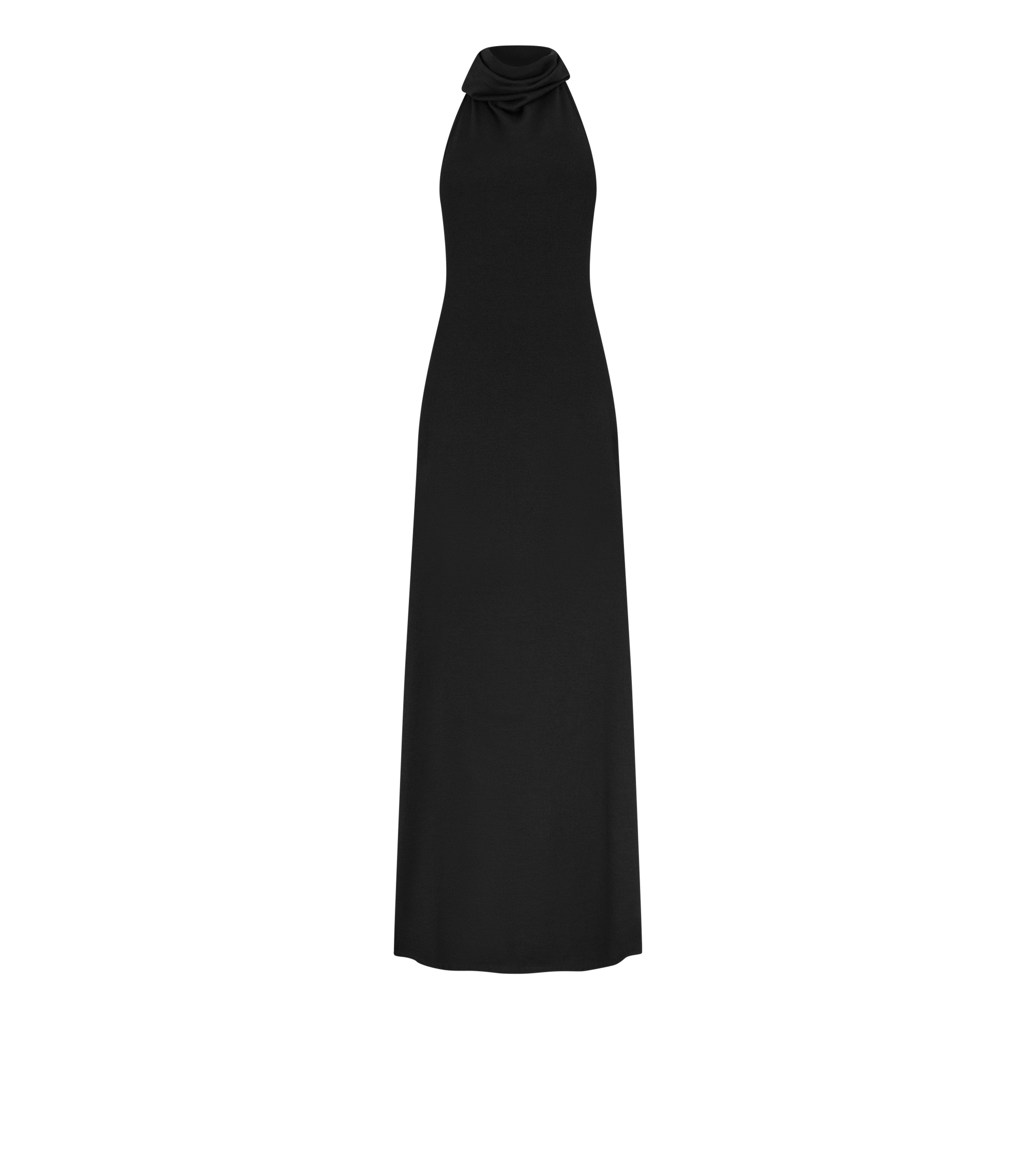 - LONG HALTERNECK DRESS WITH POCKETS - OPEN BACK - SELF KNIT LINED POCKETS ON THE SIDE - FLOOR LENGTH - CRAFTED IN FINE STRETCH CASHMERE - 12 GAUGE - 93% CASHMERE 7% POLYESTER