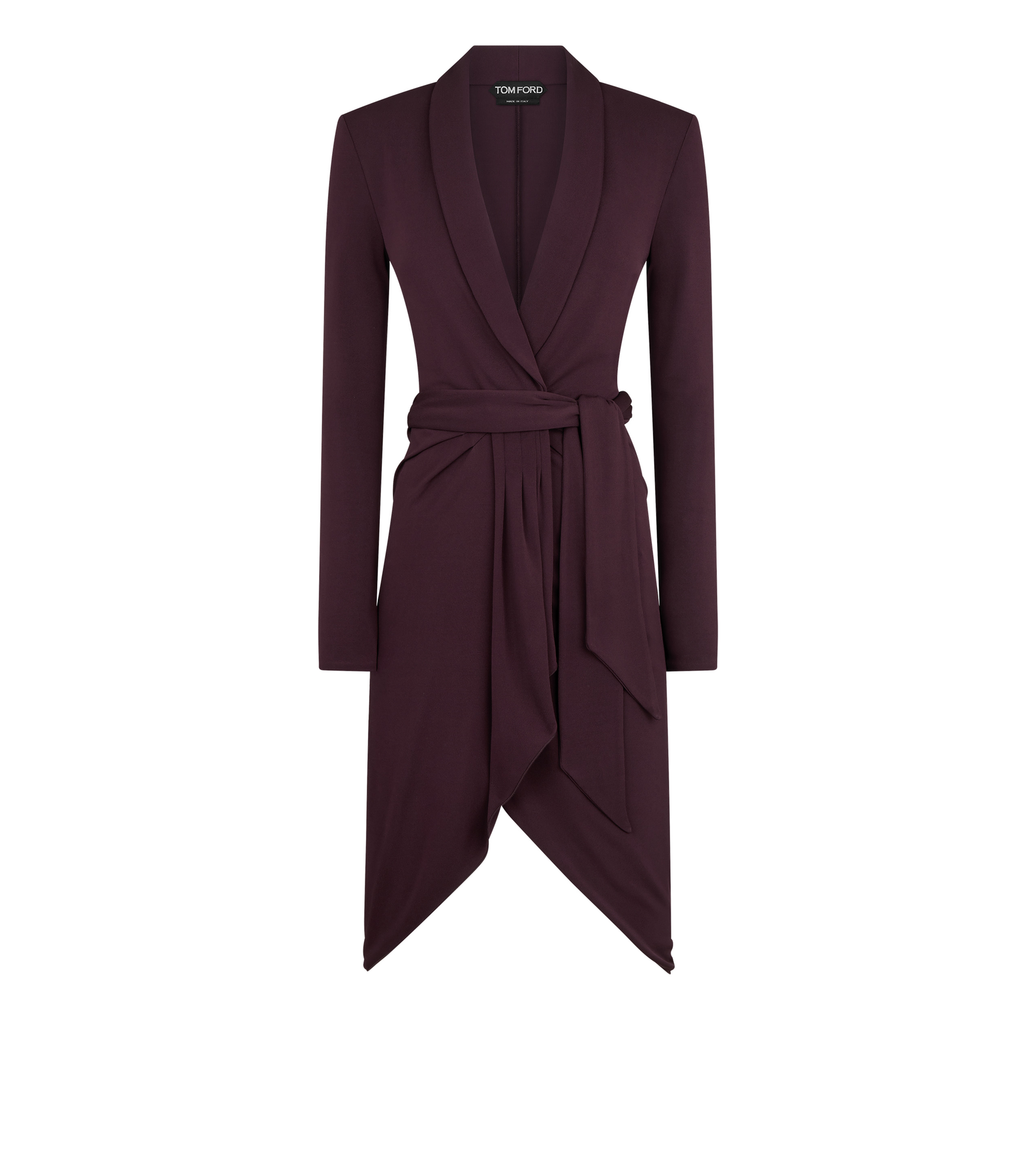 - LONG SLEEVE WRAP DRESS - DEEP V-NECK - WRAP CLOSURE AT THE WAISTLINE WITH A COVERED SNAP BUTTON - FABRIC AT THE NECKLINE FOLDS OVER TO FORM A SHAWL COLLAR - SELF-FABRIC BELT WITH LOOPS AT THE WAIST - STRUCTURED SHOULDER PADS - CRAFTED IN VISCOSE CREPE JERSEY - 100% VISCOSE