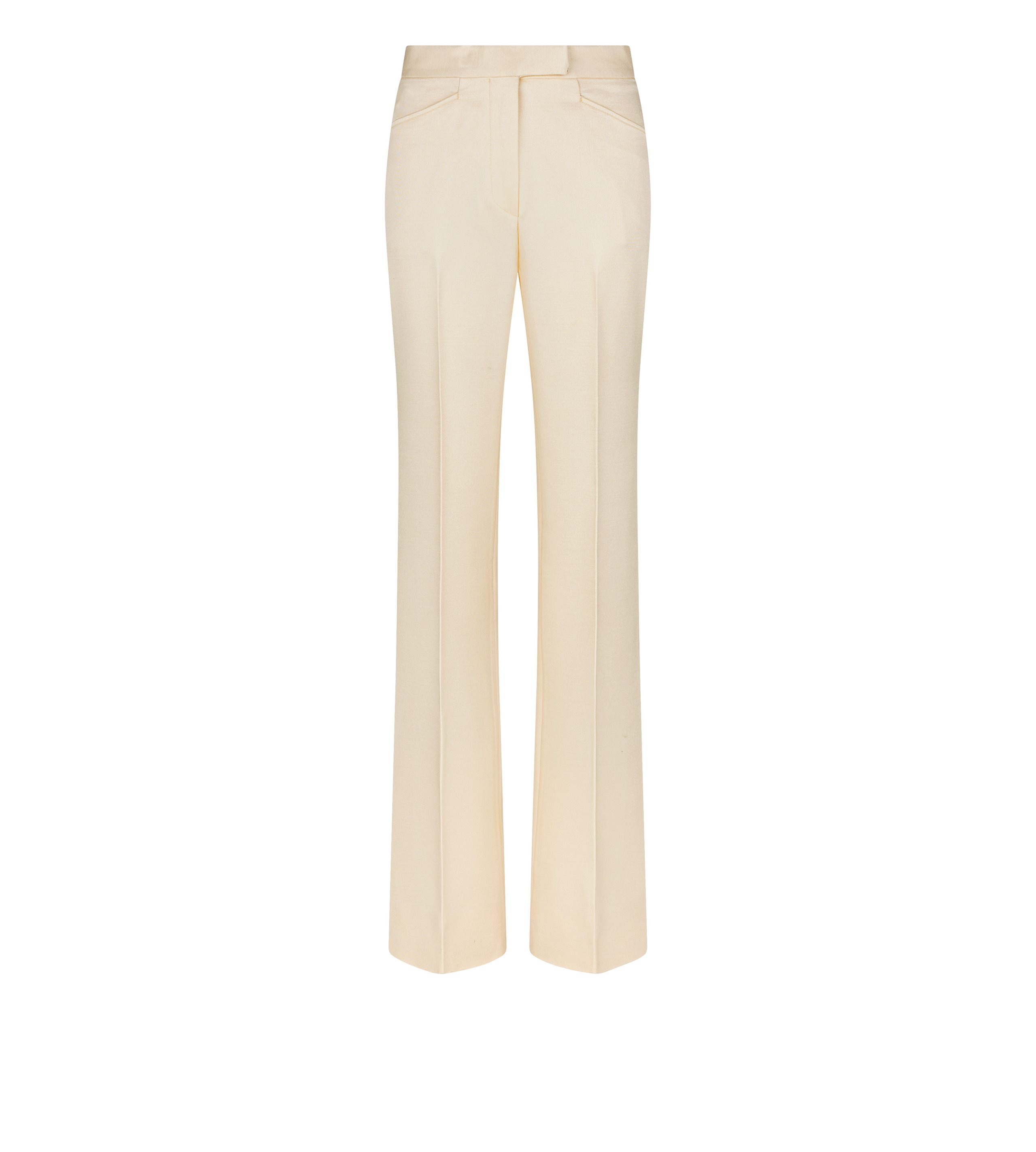 - WIDE LEG TUXEDO TAILORED PANTS - SIGNATURE TAILORING CONSTRUCTION - HOOK AND BAR WAISTBAND CLOSURE - FRONT FROGMOUTH POCKETS - TUXEDO SIDE BAND AND WAISTBAND IN TONAL SATIN - WELT POCKETS ON THE BACK - SIGNATURE TOM FORD HORN BUTTON - CRAFTED IN LUSTROUS BARATHEA SILK WOOL - 90% WOOL 10% SILK