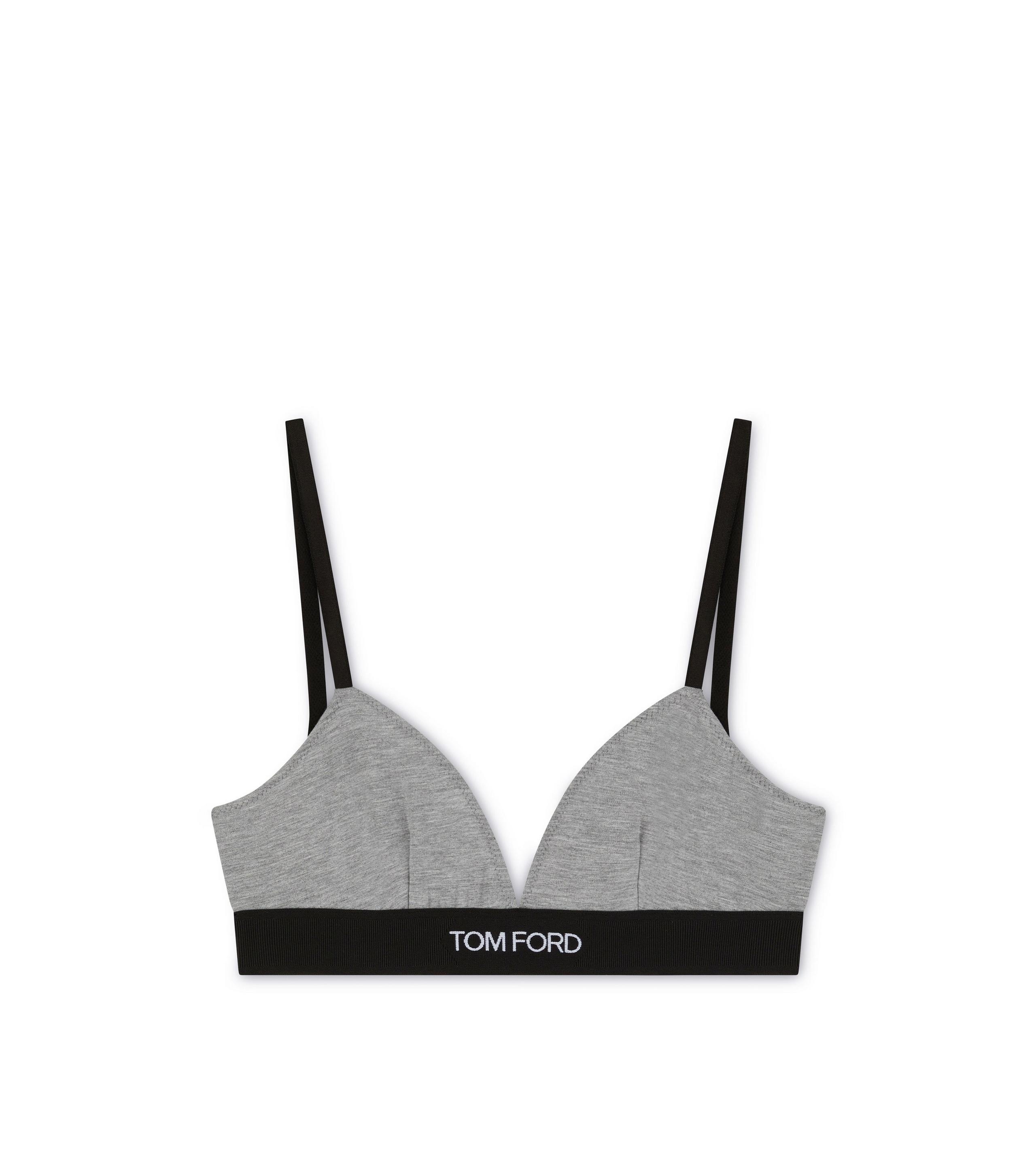 - STRETCH BRA - ELASTICATED BAND WITH TOM FORD JACQUARD LABEL - ELASTIC ADJUSTABLE STRAPS - CENTRE BACK GOLD METAL LOGOED HOOK FOR CLOSURE - GOLD METAL HARDWARE - CRAFTED IN MODAL JERSEY - 97% MODAL 3% ELASTANE