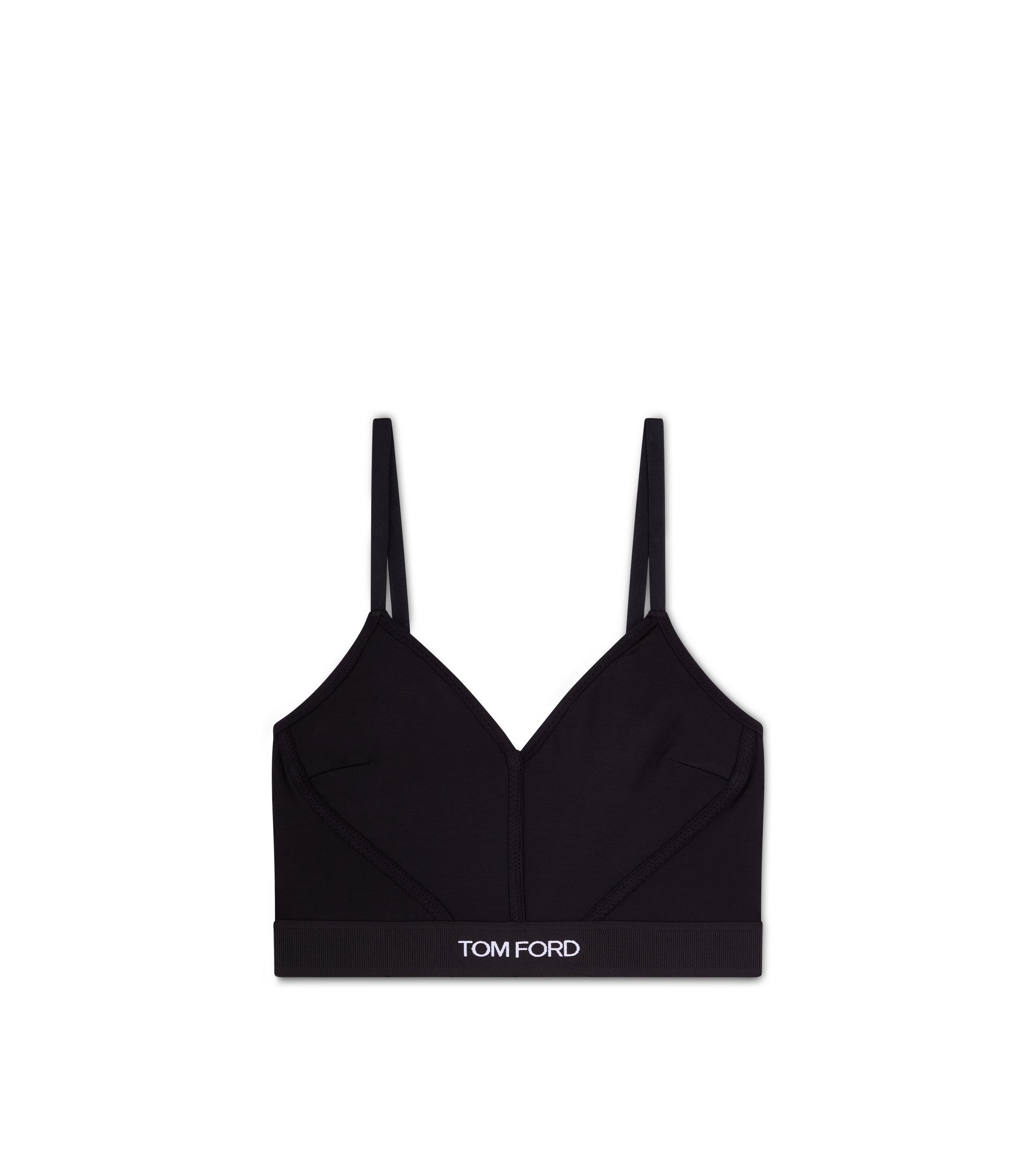 - STRETCH TOP - V-NECK - ZIG ZAG STITCHING DETAILINGS - ELASTICATED BAND WITH TOM FORD JACQUARD LABEL - ELASTIC ADJUSTABLE STRAPS - GOLD METAL HARDWARE - CRAFTED IN MODAL JERSEY - 97% MODAL 3% ELASTANE