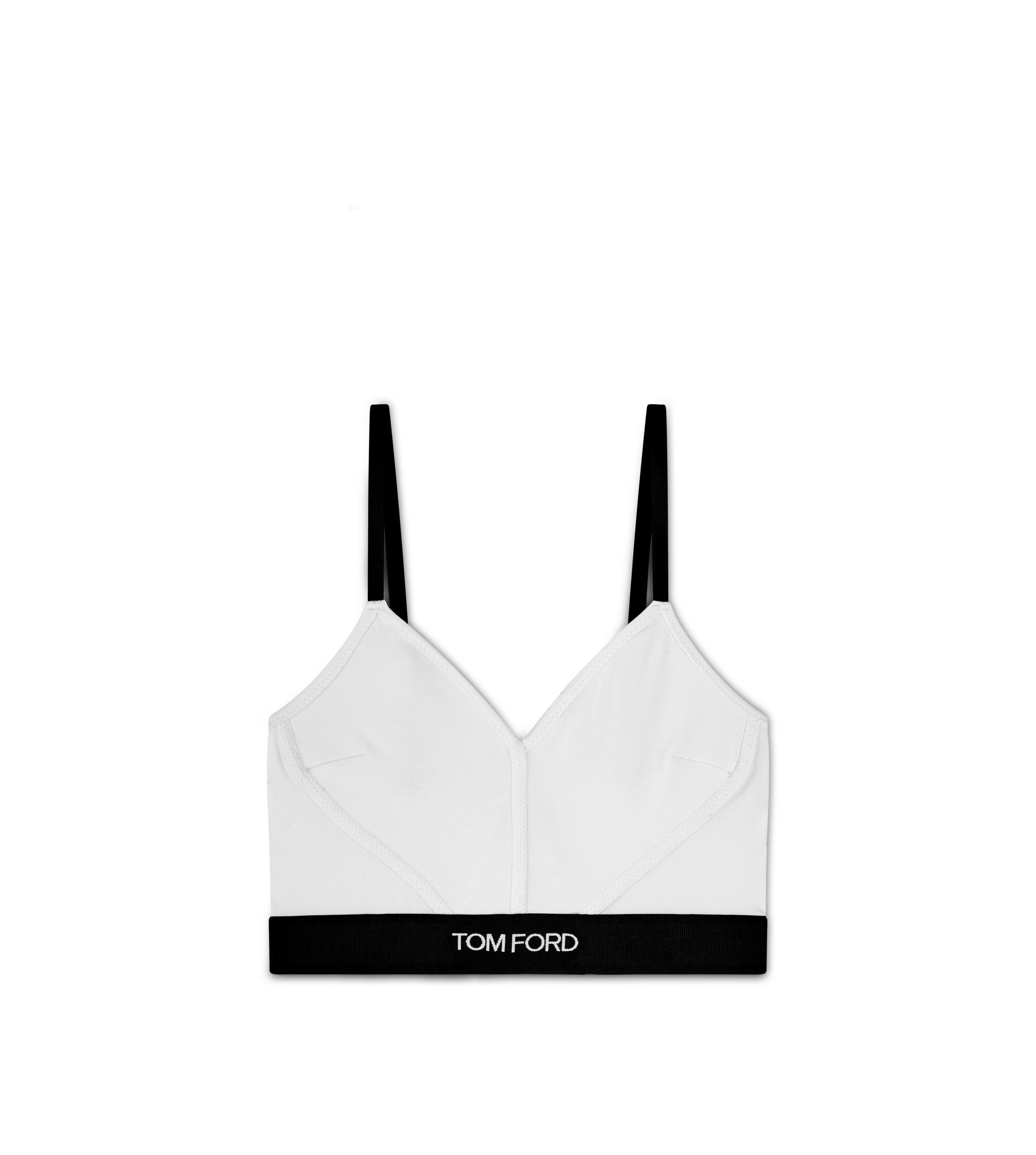 - STRETCH TOP - V-NECK - ZIG ZAG STITCHING DETAILINGS - ELASTICATED BAND WITH TOM FORD JACQUARD LABEL - ELASTIC ADJUSTABLE STRAPS - GOLD METAL HARDWARE - CRAFTED IN MODAL JERSEY - 97% MODAL 3% ELASTANE