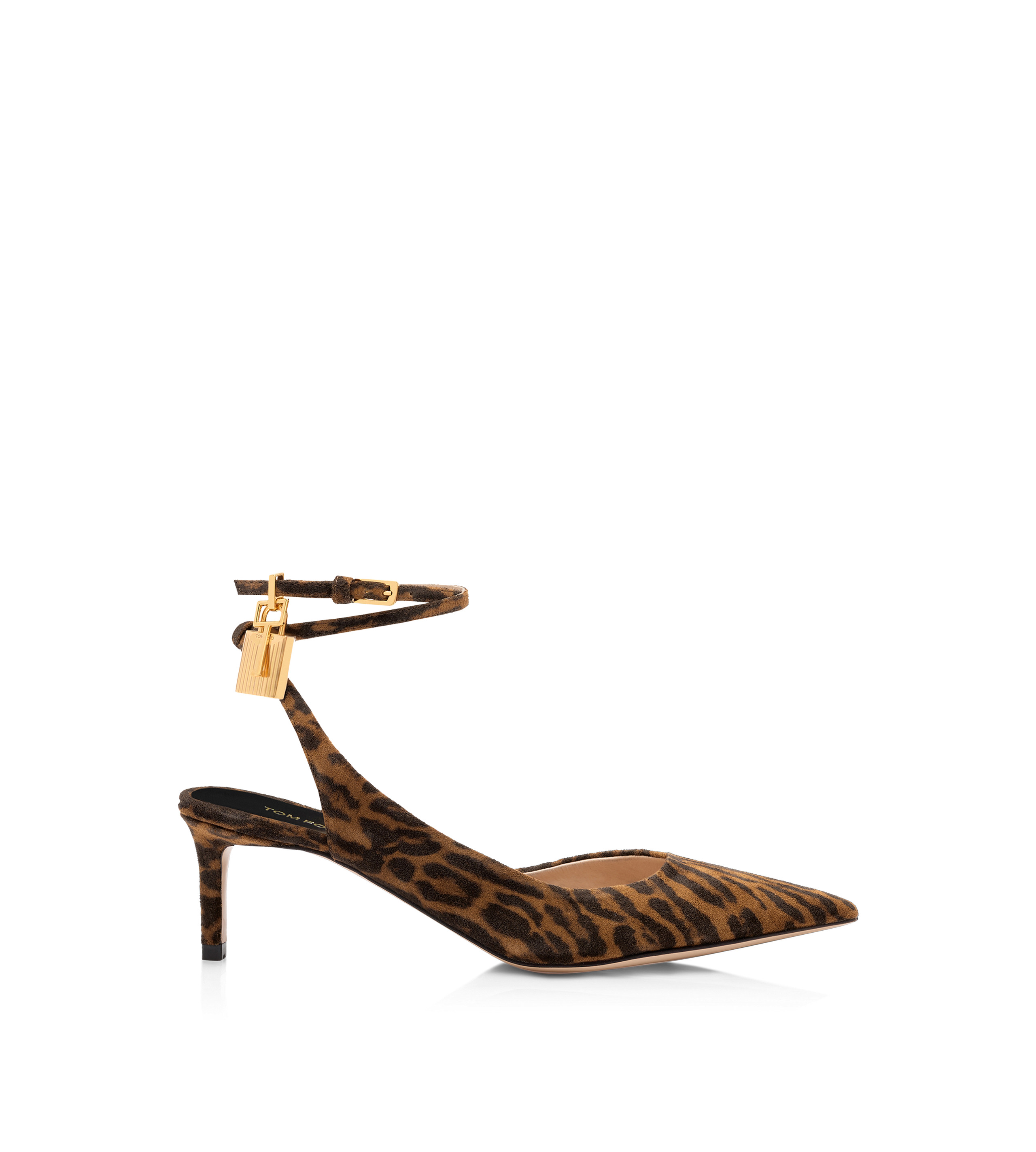 OCELOT-PRINT SUEDE PADLOCK SLINGBACK