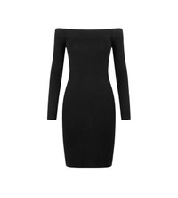 - OFF THE SHOULDER KNITTED DRESS - ABOVE THE KNEE LENGTH - RIBBED CUFFS - CRAFTED IN FULL NEEDLE FINE CASHMERE SILK - GAUGE 18 - 70% CASHMERE 30% SILK