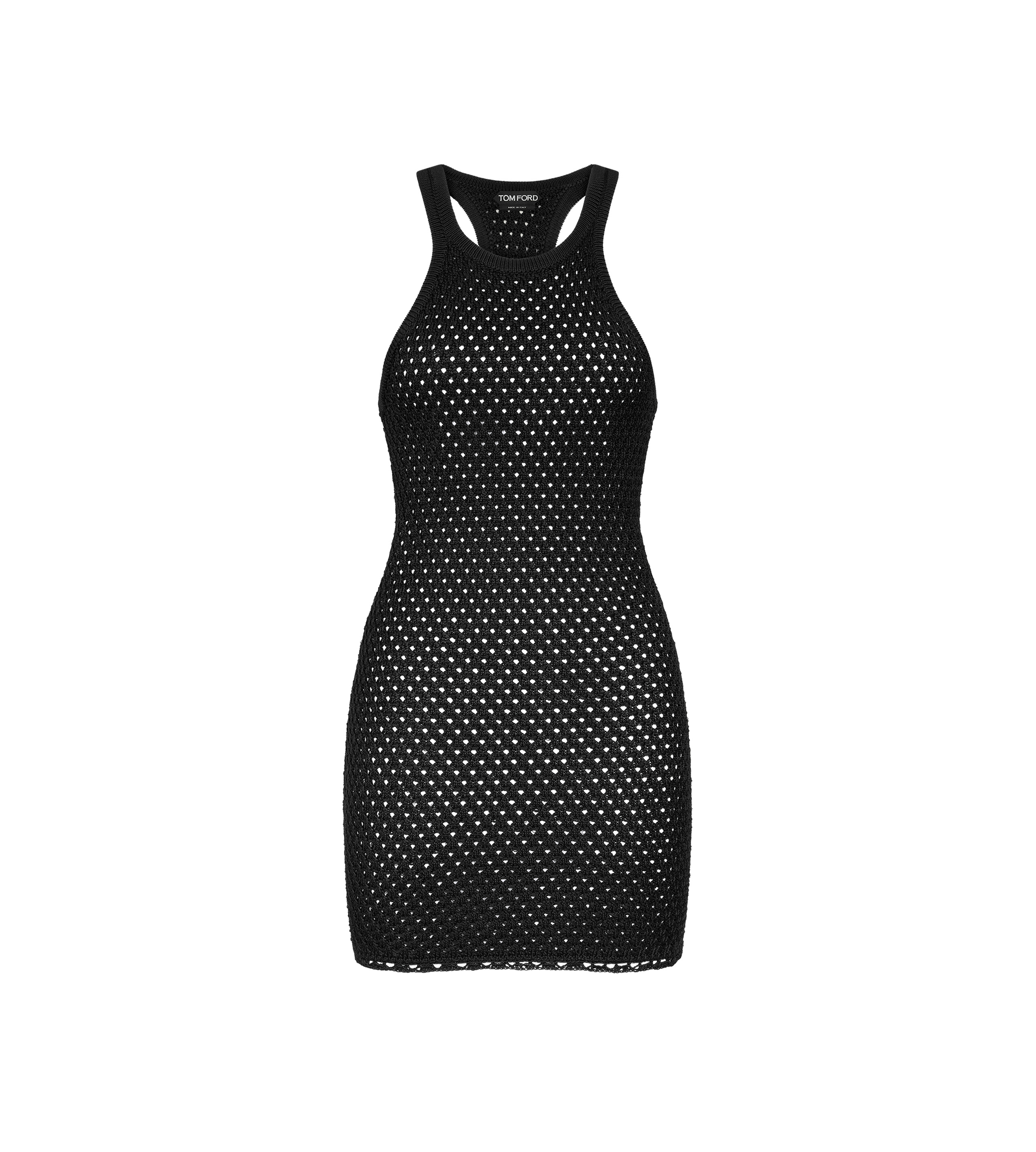 - RACERBACK COCKTAIL MINI DRESS - RIBBED COLLAR AND HEM - METAL WHITNEY T SHAPED SIGNATURE HARDWARE - CRAFTED IN FINE SILK MESH - GAUGE 5 - 70% SILK 27% NYLON 3% ELASTANE